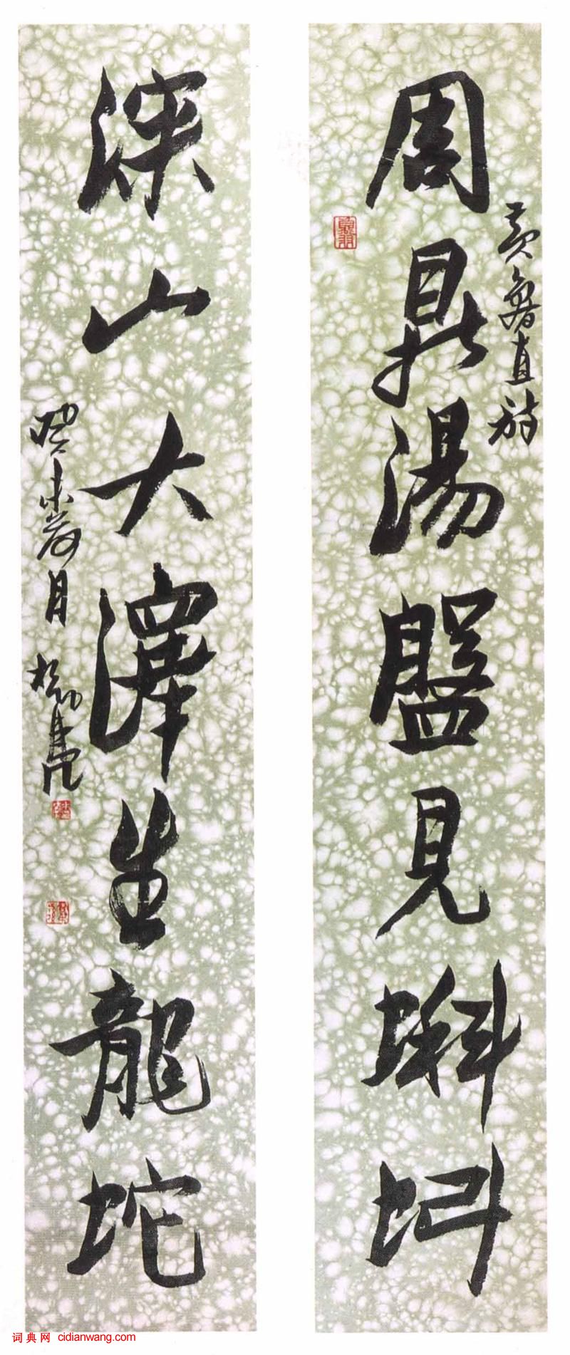 書法欣賞魏晉書法唐朝書法宋朝書法元朝書法明朝書法清朝書法近現代書法字典網>> 歷代書法>> 近現代>> 來楚生行書《錄黃庭堅句七言聯》正文 來楚生行書《錄黃庭堅句七言聯》作者:來楚生 書體:行書 來楚生《錄黃庭堅句七言聯》紙本(汁綠虎皮宣)行書 103×18.5cm×2 1943年書 上海童衍方藏 釋文:周鼎湯盤見蝌蚪,深山大澤生龍蛇。癸未夏月楚鳧。【資料來源】《海派代表書家系列作品集——來楚生》(上海書畫出版社)來楚生的相關書法作品:來楚生行書《臨黃道周榕壇問業軸》 來楚生隸書《毛澤東聯句》 來楚生行書《士玖嵌名五言聯》 來楚生隸書《養成準備七言聯》 來楚生行書《錄黃庭堅句七言聯》 相關文章:董其昌臨《淳化閣帖》 (行書)董其昌畫像董其昌以書畫名重海內外,在董其昌身後,留存大量臨摹各家筆墨的作品,《淳...董其昌·臨冠軍帖 (草書)董其昌《臨冠軍帖》。冠軍帖釋文:知汝殊愁,且得還為佳也。冠軍暫暢釋,當不得極蹤。...徐三庚《篆書儀表瑾瑜八言聯》 (篆書)徐三庚《篆書儀表瑾瑜八言聯》 私人藏釋文:儀表外明風神內照,瑾瑜比潔日月爭光。 ...南宋瓷印 難得一見景德鎮窯南宋青白瓷印研究講座本篇瓷印,展出了西泠印社理事、南京藝術學院教授黃惇收...漢曹全碑原石照片 (隸書)▶曹全碑,全稱漢郃陽令曹全碑,東漢中平二年十月立。明萬曆間出吐於陝西郃縣舊城,1...莫友芝《篆書易經繫辭屏》 (篆書)莫友芝《篆書易經繫辭屏》 紙本篆書 133×30cm×4 深圳市博物館藏釋文...米芾·戲成詩帖 (行書)【釋文】戲成呈司諫台坐,芾。我思嶽麓抱黃閣,飛泉元在半天落。石鯨吐水(點去)出湔...趙世駿楷書臨《褚遂良雁塔聖教序》 (楷書)趙世駿楷書欣賞臨《褚遂良雁塔聖教序》趙氏所處時代,是書風丕變的急轉期。康有為持論...行草書法的虛實處理示例虛實處理,貫穿於書法的始終,沒有虛實,沒有矛盾,就如同沒有矛盾衝突的戲劇一樣,會...康里巎巎跋《任仁發張果老見明皇圖卷》 (行書)康里巎巎 跋《任仁發張果老見明皇圖卷》 絹本 縱41.5cm 北京故宮博物院藏任...