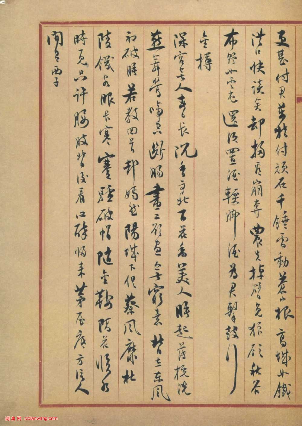 書法欣賞魏晉書法唐朝書法宋朝書法元朝書法明朝書法清朝書法近現代書法字典網>> 歷代書法>> 近現代>> 沈尹默行書《蘇東坡詩冊》正文 沈尹默行書《蘇東坡詩冊》作者:沈尹默 書體:行書 沈尹默行書作品欣賞《蘇東坡詩冊》,沈尹默68歲書贈李天馬書法冊頁一套16P。1 2 3 4 5 6 7 8 下一頁 尾 頁沈尹默的相關書法作品:沈尹默:顏真卿《述張旭筆法十二意》釋譯 沈尹默行書《萬頃九秋七言聯》 沈尹默楷書《禁經永字八法》 沈尹默行楷《飽嘗重述七言聯》 沈尹默行書《毛澤東詩句聯 》 沈尹默楷書對聯 沈尹默行書《鮑照白雲詩軸》 沈尹默楷書《孫蕉軒九十嘏壽辭》 沈尹默行書《景寧雜詩》 相關文章:東魏楷書《高湛墓誌》 (楷書)《高湛墓誌》全稱《魏故假節督齊州諸軍輔國將軍齊州刺史高公墓志銘》,東魏元象二年(...劉墉行書《錄容台集語軸》 (行書)劉墉《錄容台集語軸》絹本行書 171.2×50.3cm 青島市博物館藏釋文:袁...如何提高書法臨摹的字形準確性提高臨摹的字形準確性基礎知識普及:一、外輪廓法二、重心法三、中宮法四、主筆法五、...孫曉雲《懷仁集王羲之聖教序》臨習秘訣臨摹,對於學習書法來說,是一個艱辛的過程,更是一個不可缺少的過程。這好比鋼琴中的...莫是龍《行書偶述文扇面》 (行書)莫是龍《行書偶述文扇面》紙本 上海博物館藏 釋文:在家妻伴,出家...楊妹子·詩一首 (楷書)楊妹子《詩一首》,楷書,23.2×24.4cm,美國紐約大都會博物館藏。釋文:...趙孟頫《真草千字文》 (真草)趙孟頫傳世書法作品很多,而且各體都有。以楷書和行書為最。趙孟頫《真草千字文》未署...脫脫木兒·跋張先《十詠圖》 (行書)【釋文】吳興老子會南園,十詠於今只獨傳。瀟灑丹青如一日,風流文彩未千年。情留去燕...祝允明·跋米芾《蜀素帖》 (行書)祝允明跋米芾《蜀素帖》,行書。現存台灣故宮博物院。祝允明跋米芾《蜀素帖》釋文:南...趙孟頫《蘭亭序十三跋》殘本 (行書)趙孟頫《蘭亭序十三跋》殘本(選頁)紙本冊頁 33.2X24.4cm 趙孟頫於至大...