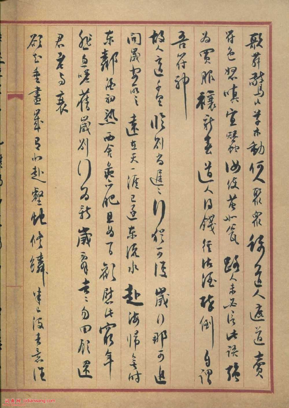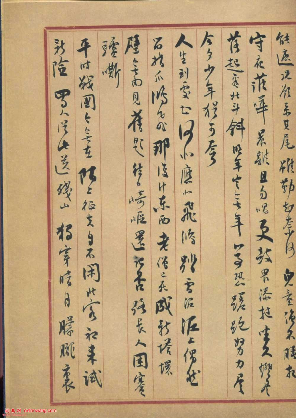 資源下載魏晉書法唐朝書法宋朝書法元朝書法明朝書法清朝書法近現代書法字典網>> 歷代書法>> 近現代>> 沈尹默行書《蘇東坡詩冊》(6)正文 沈尹默行書《蘇東坡詩冊》(6)作者:沈尹默 書體:行書 首 頁 上一頁 1 2 3 4 5 6 7 8 下一頁 尾 頁沈尹默的相關書法作品:沈尹默楷書《孫禹行墓志銘》 沈尹默行楷《飽嘗重述七言聯》 沈尹默行書《澹靜廬詩剩》 沈尹默行書《魯迅詩聯句》 沈尹默楷書《禁經永字八法》 沈尹默行書《萬頃九秋七言聯》 沈尹默楷書《祝壽十屏》 沈尹默行書《毛澤東詩句聯 》 沈尹默行書《景寧雜詩》 相關文章:貫雲石草書 《題趙孟頫雙駿圖》 (草書)貫雲石《題趙孟頫雙駿圖》紙本草書 縱19cm 台北故宮博物院藏(故-畫-001...王鐸草書《臨王曇首昨服散帖》 (草書)王鐸《臨王曇首昨服散帖》草書絹本, 227×47cm 順治三年(1646) 廣...王士禎《行書扇面》 (行書)王士禎《行書扇面》紙本泥金行書 16.2×52cm 青島市博物館藏此扇書法頗有...黃道周楷書《宓衍堂銘》 (楷書)黃道周《宓衍堂銘》 楷書 15×47.3cm 香港中文大學文物館藏(北山堂捐...北魏楷書《吊比干碑》 (楷書)《魏孝文帝吊比干文碑》位於河南衛輝城北7.5公里比干墓祠。北魏太和十八年(494...康里巎巎行書《自作秋夜感懷七言古詩》 (行書)康里巎巎《自作秋夜感懷七言古詩》 紙本 28.9×82.2cm 至正四年(1...倪元璐《行書李白“訪戴天山道士不遇”五律詩軸》 (行書)倪元璐《行書李白“訪戴天山道士不遇”五律詩軸》絹本行書 103.7×60.3c...董其昌行書臨《米芾天馬賦》 (行書)董其昌行書臨《米芾天馬賦》釋文:天馬賦。方唐牧之至盛,有天骨之超俊,勒四十萬之數...白玉蟾《足軒銘卷》 (草書)完整版(含題跋)【釋文】寄題足軒。奉似吾友周長高士,紫清白玉蟾。一丘一壑志願足,...趙孟頫行書《紈扇賦》 (行書)趙孟頫行書作品欣賞《紈扇賦》(三希堂法帖刻本),書於大德九年(公元1305年)《...