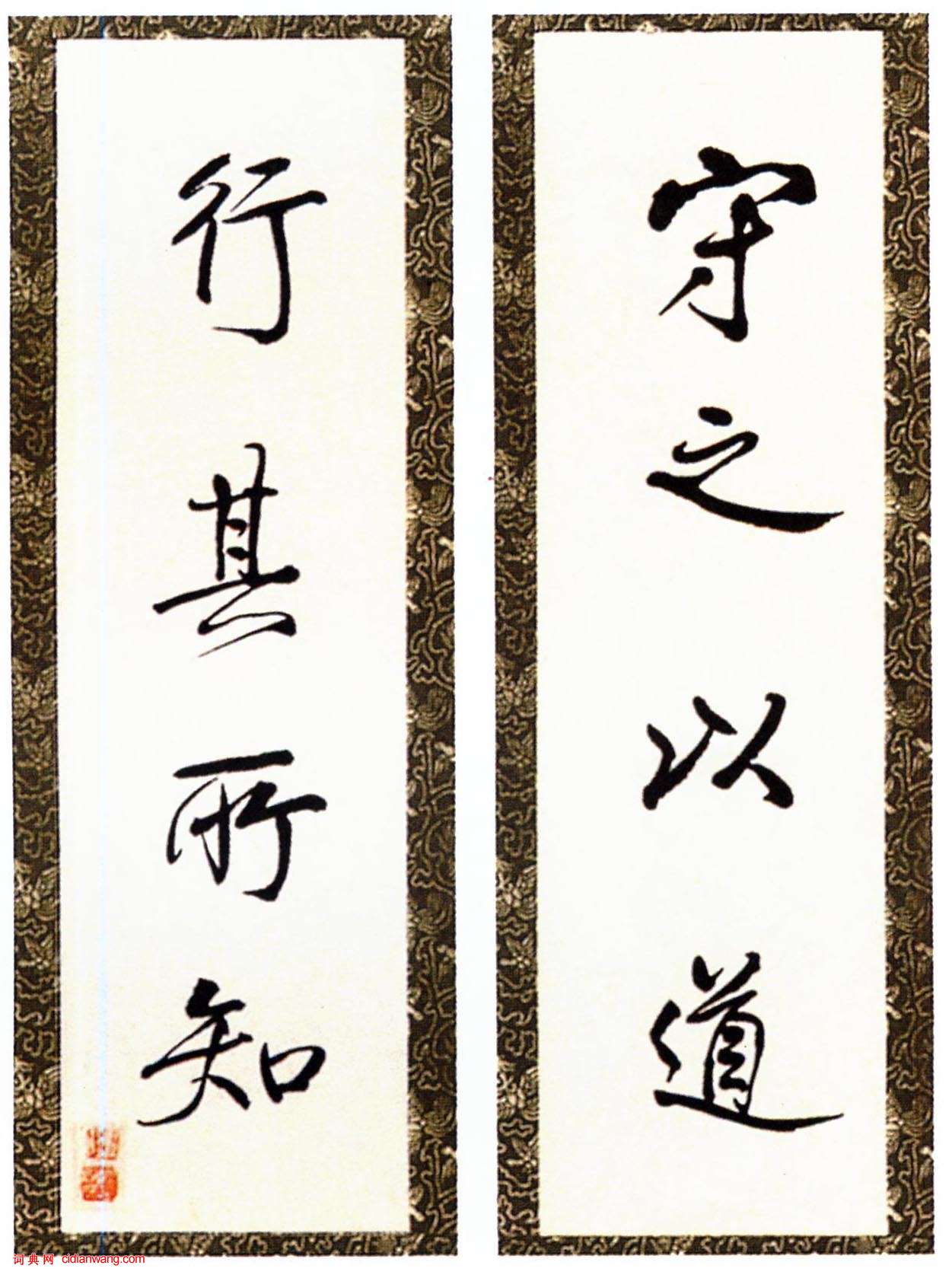 書法欣賞魏晉書法唐朝書法宋朝書法元朝書法明朝書法清朝書法近現代書法字典網>> 歷代書法>> 近現代>> 梁漱溟行書《守之以道行其所知四言聯》正文 梁漱溟行書《守之以道行其所知四言聯》作者:梁漱溟 書體:行書 梁漱溟《守之以道行其所知四言聯》行書 1980年釋文:守之以道,行其所知。 圖文來自《梁漱溟先生手跡選》(世界圖書出版公司出版 梁培寬編) 梁漱溟的相關書法作品:梁漱溟行書《錄陸游詩句》 梁漱溟行書《錄林宰平詩一首》 梁漱溟《行書大地六時八言聯》 梁漱溟行書《錄解深密經文句》 梁漱溟行書 《錄朱熹詩一首》 梁漱溟《我的自學小史手稿選頁》 梁漱溟行書《錄陶淵明詩句》 梁漱溟行書《守之以道行其所知四言聯》 相關文章:蘇軾行書《獲見帖 》《致長官董侯尺牘》 (行書)此帖又名《致長官董侯尺牘》。蘇軾書於元豐五年(1082)。紙本。行書,信札一則。...王羲之《妹至帖》 (草書)【釋文】妹至羸情地難遣憂之可言須旦夕營耽之。王羲之《妹至帖》,摹本,縱25.3厘...翁同龢隸書《良才世德五言聯》 (隸書)翁同龢《隸書良才世德五言聯》紙本隸書 145.6×39.2cm×2 台北故宮...褚遂良·孟法師碑 (楷書)《孟法師碑》,唐岑文本撰,褚遂良書。貞觀十二年(638)刻,正書碑刻。法師名靜素...應均行草《紅杏碧桃八言聯》 (行草)應均《紅杏碧桃八言聯》紙本行草書 1936年 浙江永康萬泰美術館釋文:紅杏壓林幽...黃庭堅《花氣熏人帖》 (草書)【釋文】花氣薰人慾破禪,心情其實過中年。春來詩思何所似,八節灘頭上水船。黃庭堅《...古人的文房雅器45種我們說得多的通常是文房四寶,也都知道筆墨紙硯,但是古人的文房其他寶貝卻常被我們忽...劉墉草書《臨陸游與明遠書帖扇》 (草書)劉墉《臨陸游與明遠書帖扇》草書 上海博物館藏 釋文:秋雨。尊候輕安。卿禪師遺墨...文徵明小楷《老子列傳》 (小楷)文徵明小楷《老子列傳》該作作於68歲,《老子列傳》凡34行,書於明世宗嘉靖十七年...朱耷《草書七絕詩軸》 (草書)朱耷《草書七絕詩軸》紙本草書 151.5×41cm 北京市文物商店藏釋文:鈞天...