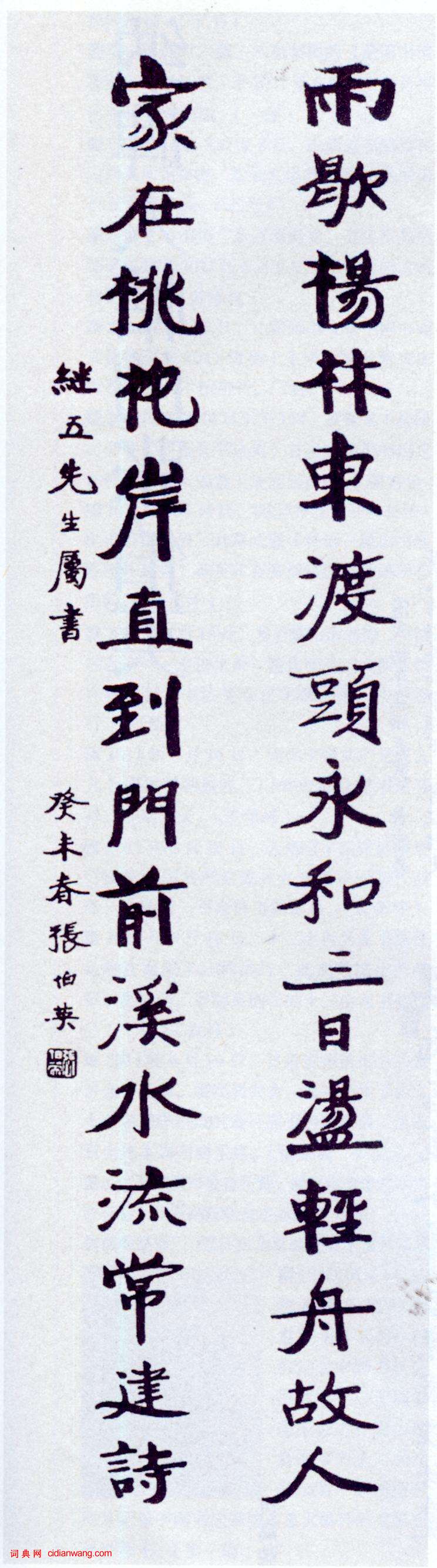 書法欣賞魏晉書法唐朝書法宋朝書法元朝書法明朝書法清朝書法近現代書法字典網>> 歷代書法>> 近現代>> 張伯英楷書《雨歇家在十六言聯》正文 張伯英楷書《雨歇家在十六言聯》作者:張伯英 書體:楷書 張伯英《楷書“雨歇家在”十六言聯》 刊於《書法》2011年第7期 釋文:雨歇楊林東渡頭,永和三日盪輕舟。故人家在桃花岸,直到門前溪水流。常建詩張伯英的相關書法作品:張伯英《行書仲長統樂志論四條屏》 張伯英《行書仲長統樂志論四條屏》 張伯英楷書《雨歇家在十六言聯》 張伯英《行書米芾詩手札》 張伯英《行書小來禽館札記》 張伯英《楷書“采豪花藏”七言聯》 張伯英《行楷散此偶有八言聯》 張伯英《楷書“稱意談經”七言聯》 相關文章:徐浩《陳尚仙墓誌》 (楷書)此志文字結體嚴謹、平整,筆畫精到而又舒展有度,與《不空和尚碑》相比,沒有其靈動穩...陸恭·跋褚遂良《孟法師碑》 (楷書)陸恭跋褚遂良《孟法師碑》,楷書。錢灃楷書《臨東方朔畫贊軸》 (楷書)錢灃《臨東方朔畫贊軸》 紙本楷書 180×107cm 台北故宮博物院藏 ...楊慎·石馬泉詩 (行楷)楊慎《石馬泉詩》,行楷,冷金箋本,縱21.5厘米,橫47.2厘米。北京故宮博物院...今釋《草書七絕立軸》 (草書)今釋《草書七絕立軸》紙本草書 129.8×33.4cm 蘇州博物館藏釋文:東坡...傅山《草書臨王羲之明府帖》 (草書)傅山 《草書臨王羲之明府帖》軸 絹本 191cm×49cm 山西省博物院藏...高二適行書《摘錄王傑日記條幅》 (行書)高二適《摘錄王傑日記條幅》 138.6×34.3cm 江蘇省美術館藏釋文:脫離...趙孟頫行楷跋楊凝式《夏熱帖》 (行楷)趙孟頫跋楊凝式《夏熱帖》 釋文:楊景度書出於人知見之表,自非深於書者,不能盡識也...黃自元間架結構摘要九十二法 (楷書)黃自元楷書間架結構九十二法(全本),黃自元一生勤於書法,博採顏、柳、歐各家之長,...蔡襄·致彥猷尺牘 (行書)【釋文】襄啟:大研盈尺,風韻異常,齋中之華,繇是而至。花盆亦佳品,感荷厚意。以珪...