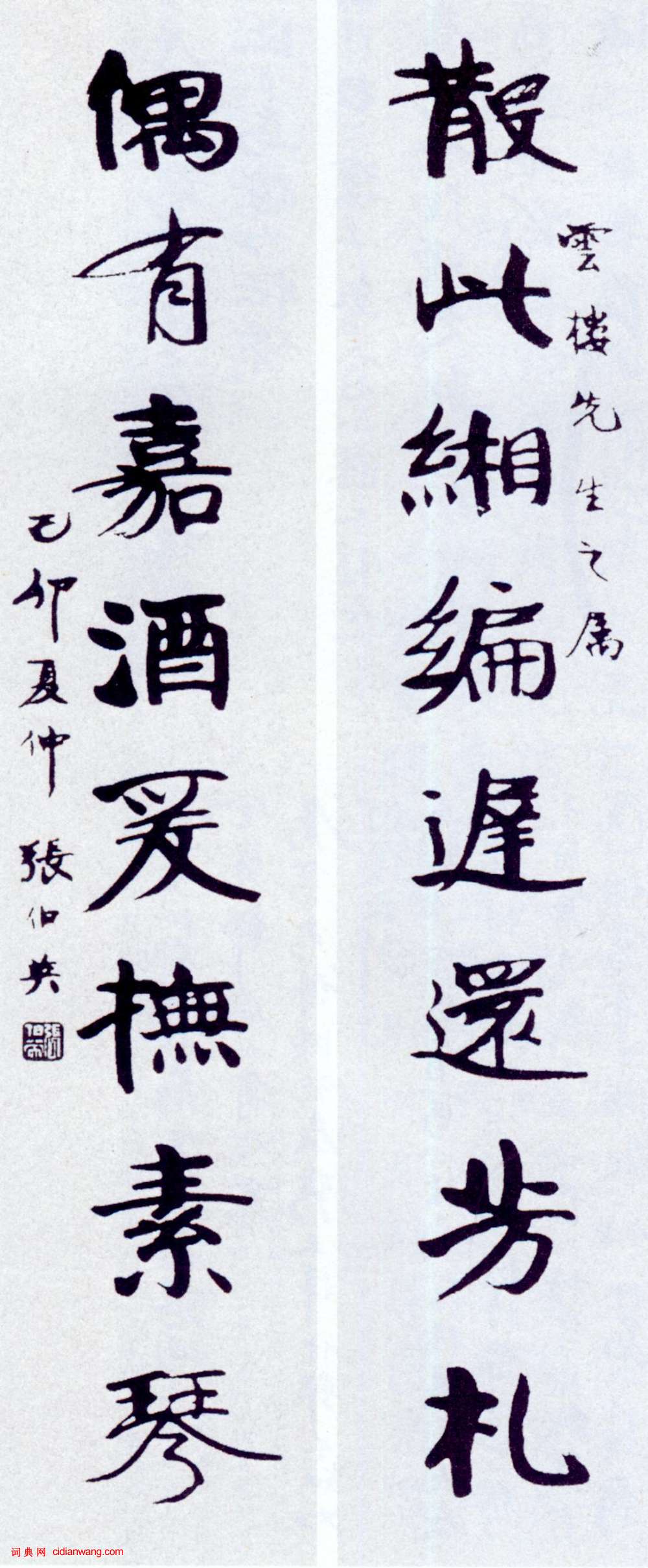 書法欣賞魏晉書法唐朝書法宋朝書法元朝書法明朝書法清朝書法近現代書法字典網>> 歷代書法>> 近現代>> 張伯英《行楷散此偶有八言聯》正文 張伯英《行楷散此偶有八言聯》作者:張伯英 書體:行楷 張伯英《行楷“散此偶有”八言聯》 刊於《書法》2011年第7期 釋文: 散此緗編遲還芳札,偶有嘉酒爰撫素琴。 張伯英的相關書法作品:張伯英《行書仲長統樂志論四條屏》 張伯英《行書米芾詩手札》 張伯英《行書小來禽館札記》 張伯英楷書《雨歇家在十六言聯》 張伯英《行書仲長統樂志論四條屏》 張伯英《行楷散此偶有八言聯》 張伯英《楷書“采豪花藏”七言聯》 張伯英《楷書“稱意談經”七言聯》 相關文章:楊法《隸書五言詩軸》 (隸書)楊法《隸書五言詩軸》 來源不詳文徵明《偶適溪樓帖》 (楷書)文徵明《偶適溪樓帖》:楷書,紙本,尺牘;縱24.9厘米,橫18.6厘米;藏於中國...吳玉如《篆書條幅》 (篆書)吳玉如《篆書條幅》 1942年作 釋文:神清洞中流水潺潺界以青松朱扉惟忠孝列仙居...傅山《草書右軍大醉七言詩軸》 (草書)傅山《草書右軍大醉七言詩軸》絹本,草書。縱202.7厘米 橫44.2厘米。南京博...米芾《惡札帖》 (行書)【釋文】芾啟,要惡札,是甚字,批及。芾頓首。章侯茂異。米芾《惡札帖》,紙本,行書...王羲之草書《七月帖》 (草書)王羲之《七月帖》又名《秋月帖》,草書,台北故宮博物院藏作品,紙本。釋文:七月一日...文徵明行書《苦瘍帖》 (行書)文徵明行書《苦瘍帖》釋文:瘍勢比日稍損,然未能解脫,夜臥不安,兼苦舊逋迫促,情況...謝鐸·跋陸游《懷成都十韻詩卷》 (行草)謝鐸跋陸游《懷成都十韻詩卷》,行草書,縱34.6cm。故宮博物院藏。黃輝《草書送冊封諸使詩扇》 (草書)黃輝《草書送冊封諸使詩扇》紙本草書 18×56cm 重慶博物館藏 釋文:昔余駕...文徵明《點閘帖》 (楷書)文徵明《點閘帖》,楷書尺牘,故宮博物院藏。釋文:自考試後欲一詣,左右屬、巡按公在...