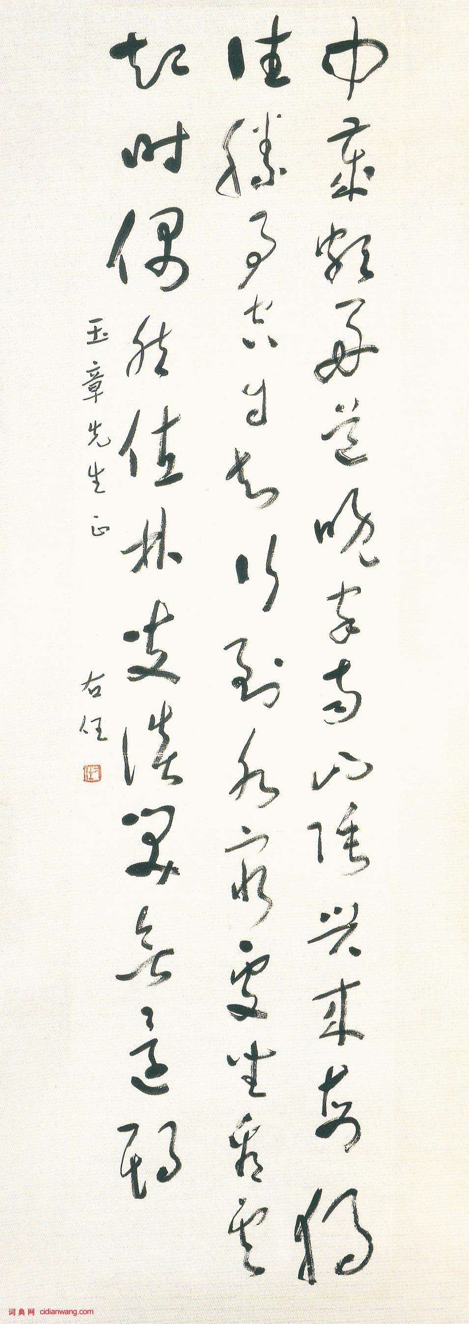 書法欣賞魏晉書法唐朝書法宋朝書法元朝書法明朝書法清朝書法近現代書法字典網>> 歷代書法>> 近現代>> 于右任《終南別業草書軸》正文 于右任《終南別業草書軸》作者:于右任 書體:草書 于右任《終南別業草書軸》 南京大學藏轉自南京大學歷史系網站釋文:中歲頗好道,晚家南山陲。興來每獨往,勝事空自知。行到水窮處,坐看雲起時。偶然值林叟,談笑無還期。 玉章先生正 右任 于右任的相關書法作品:于右任《草書呂子語軸 》 于右任草書《大翼長松七言聯》 于右任楷書《張清和墓志銘》 于右任行書《藏書紀事詩軸》 于右任行草《劉允丞墓誌》 于右任草書《可朋詩耕田鼓四屏》 于右任《終南別業草書軸》 相關文章:陳奕禧行書《七絕立軸》 (行書)陳奕禧《行書七絕立軸》紙本行書 103×37cm 湖北省博物館藏釋文:我憶南湖...劉墉行書 《節臨薛紹彭蘭亭序臨本軸》 (行書)劉墉《節臨薛紹彭蘭亭序臨本軸》行書 128×60.5cm 山東省博物館藏 釋...蘇軾行書《令子帖》 (行書)蘇軾《令子帖》 書於紹元年(1094)。紙本。行書,尺牘一則。凡4行,計50字。...吳琚《行書五段卷》 (行書)吳琚《行書五段卷》28.7×63.8cm 上海博物館藏(劉靖基捐贈)吳琚《行書...陳孚恩《行書八言聯》 (行書)陳孚恩《行書八言聯》灑金紙本 164×37.5 cm×2 釋文:芳草有情雁落...周必大·跋李結《西塞漁舍圖》 (行書)周必大跋李結《西塞漁舍圖》,縱40.7厘米。大都會美術館藏。查升·行書七言聯句軸 (行書)查升《行書七言聯句軸》。敦煌《食療本草》殘卷 (楷書)敦煌《食療本草》殘卷 紙本,捲軸。26.6x240cm 公元400-934 英國...沈曾植《行書江蓮野竹五言聯》 (行書)沈曾植《行書江蓮野竹五言聯》紙本行書 134×33cm×2 平湖市博物館藏 ...黃道周行草《倚鋤五言詩軸》 (行草)黃道周《倚鋤五言詩軸》綾本 行草書 172.8×52.9cm 浙江省博物館藏釋...