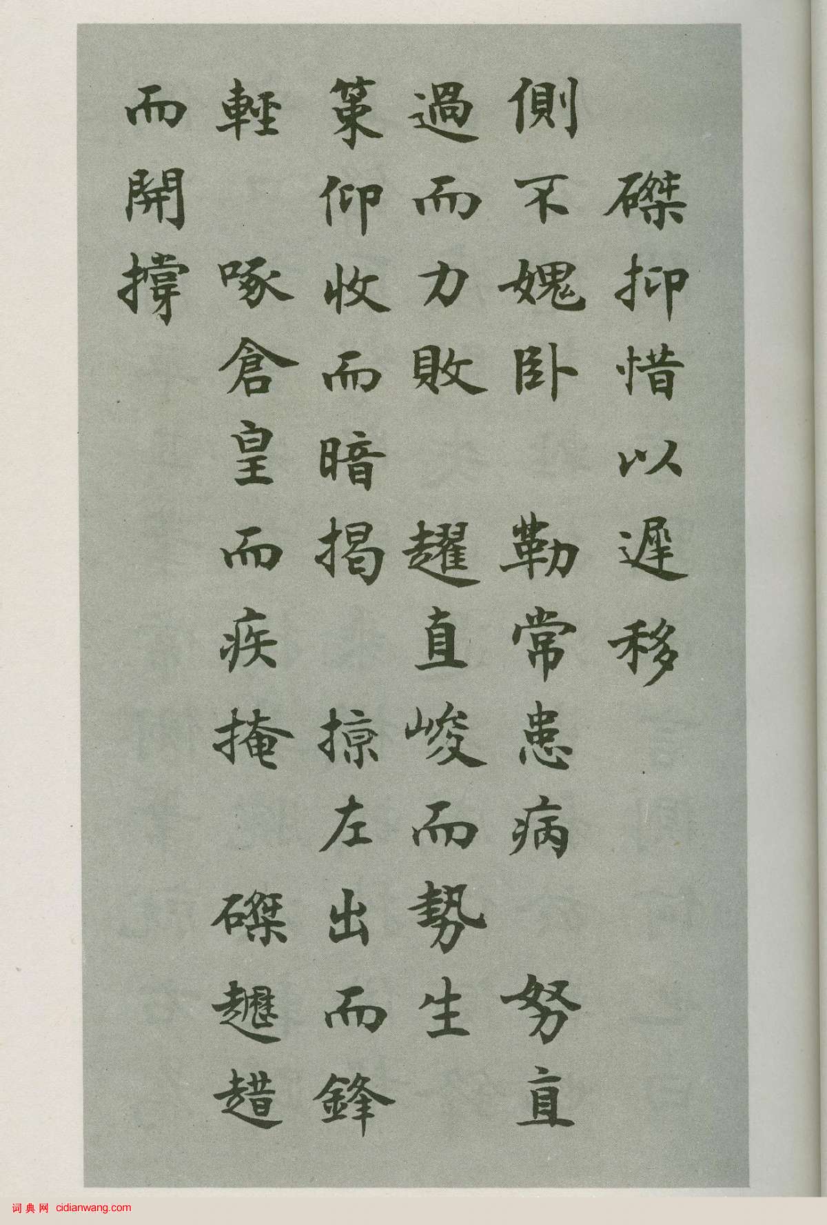 書法欣賞魏晉書法唐朝書法宋朝書法元朝書法明朝書法清朝書法近現代書法字典網>> 歷代書法>> 近現代>> 沈尹默楷書《禁經永字八法》(2)正文 沈尹默楷書《禁經永字八法》(2)作者:沈尹默 書體:楷書 首 頁 上一頁 1 2 3 4 5 6 7 8 9 10 下一頁 尾 頁沈尹默的相關書法作品:沈尹默行楷《飽嘗重述七言聯》 沈尹默楷書《孫禹行墓志銘》 沈尹默行書《歐陽修詩話單片》 沈尹默行書《魯迅詩聯句》 沈默《行書馬駿山開七言聯》 沈尹默楷書《祝壽十屏》 沈尹默行書《萬頃九秋七言聯》 沈尹默行書《遣興五言詩二首軸》 沈尹默楷書《禁經永字八法》 相關文章:趙之琛《隸書七言聯》 (隸書)趙之琛《隸書七言聯》,西泠印社藏。司馬光·洛陽耆英會序 (楷書)北宋 司馬光《洛陽耆英會序》,楷書。西漢篆書《建昭三年鍾銘》 (篆書)西漢 建昭三年鍾銘 北京保利藝術博物館藏此器腹刻銘兩處有兩處,其中一處銘文5行2...蘇軾行書《寶月帖》 (行書)蘇軾《寶月帖》 書於1065年(治平二年) 行書,藏台北故宮博物院。曾編人《蘇氏...周伯琦·楷書朱德潤墓志銘 (楷書)《周伯琦楷書朱德潤墓志銘》簡介:本篇是周伯琦為友人朱德潤撰寫的墓志銘。朱德潤(1...沈曾植《節錄文心雕龍史傳篇文軸》 (行草)沈曾植《節錄文心雕龍史傳篇文軸》紙本行草書 146.7×79.5cm 浙江省博...祝允明行草《自作詩四首》 (行草)祝允明擅詩文,尤工書法,名動海內。他與唐寅、文徵明、徐禎卿並稱“吳中四才子”。又...唐刻宋拓晉唐小楷拓本八種大都會博物館藏晉唐小楷法書八種舊拓本: 1. 東晉 王羲之 小楷樂毅論 舊拓本 ...東漢《王平君闕銘》 (隸書)東漢 王平君闕銘 闕高220cm 寬57cm 四川成都市出土張從申·茅山玄靜碑 (楷書)元拓張從申茅山玄靜碑《元拓張從申茅山玄靜碑》簡介:張從申茅山玄靜碑,全名《唐茅山...
