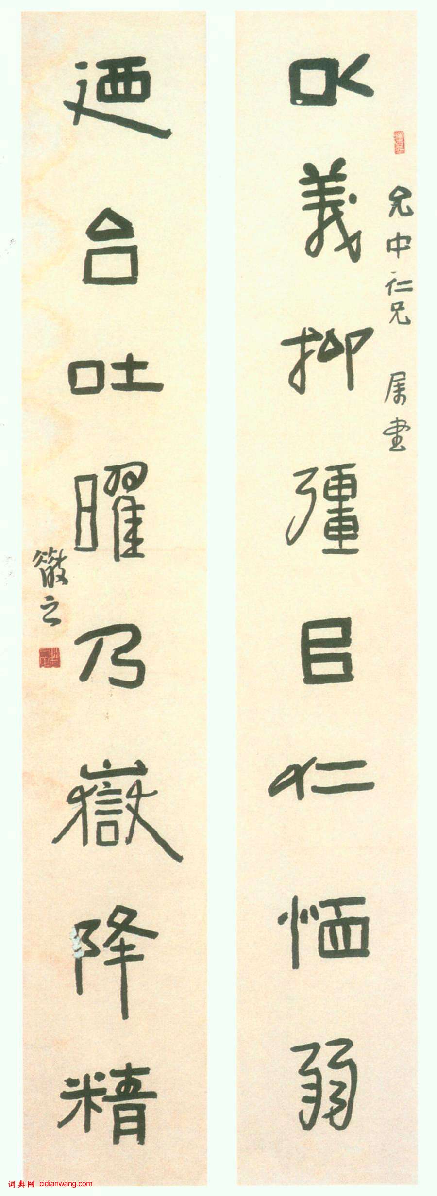 林散之《以義乃台八言聯》紙本隸書 160×24cm×2 約作於30年代 周金花藏