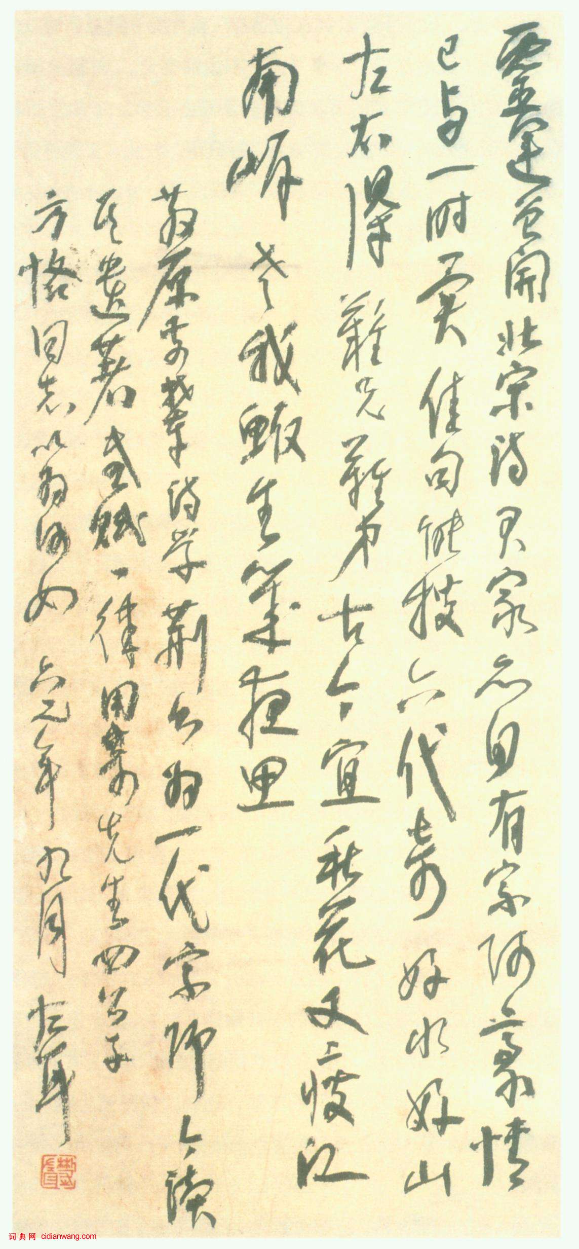 書法欣賞魏晉書法唐朝書法宋朝書法元朝書法明朝書法清朝書法近現代書法字典網>> 歷代書法>> 近現代>> 林散之行草《自作詩感賦》正文 林散之行草《自作詩感賦》作者:林散之 書體:行草 林散之《自作詩感賦》紙本 53×24cm 1962年 浦口求雨山文化名人紀念館-林散之館藏【資料來源】《中國書法家全集——林散之》(河北教育出版社) 林散之的相關書法作品:林散之《隸書俾壽八言聯之一》 林散之《隸書釋智果書頌橫幅》 林散之《草書作畫有感二首詩軸》 林散之行書《小立不居八言聯》 林散之行草《酒逢禮愛五言聯句》 林散之草書《瑤池歸來自作詩軸》 林散之楷書《書贈日本詩軸》 林散之隸書《以義乃台八言聯》 林散之跋黃賓虹《黃山臥遊》 相關文章:西周《大克鼎》 (篆體)大克鼎為西周孝王時期器物,又名克鼎和膳夫克鼎,是西周晚期著名的青銅器。1890年...魯迅行書《贈瞿秋白先生聯》 (行書)魯迅《贈瞿秋白先生聯》 141×42cm 1933年 北京魯迅博物館藏錄清人...董其昌·臨冠軍帖 (草書)董其昌《臨冠軍帖》。冠軍帖釋文:知汝殊愁,且得還為佳也。冠軍暫暢釋,當不得極蹤。...張雨行書《登南峰絕頂七言律詩軸》 (行書)張雨《登南峰絕頂七言律詩軸》 紙本 108.4×42.6cm 無紀年 台北故宮...柳公權行書《嘗瓜帖》 (行草)柳公權《嘗瓜帖》,行草,此書法作品筆畫圓潤自然而不失精準。【釋文】:爪一顆,時新...文徵明大字行書《游虎丘詩卷》 (行書)文徵明行書詩卷欣賞,丁巳春三月(1557年)文衡山88歲書,日本二玄社版。釋文:...高翔《隸書送楊已君歸金陵詩軸》 (隸書)高翔《隸書送楊已君歸金陵詩軸》 紙本隸書 94×35cm 安徽省博物館藏 【資...劉正夫《佳履帖》 (行書)【釋文】正夫頓首又啟 遠辱手翰 得聞佳履 殊用慰感 正夫乍至都下 公私擾怵 敘布...北魏楷書《李璧墓誌》 (楷書)《李璧墓誌》,北魏正光元年(公元520年)刻。青石質,高一百零四厘米,寬八十九厘...吳玉如《篆書條幅》 (篆書)吳玉如《篆書條幅》 1942年作 釋文:神清洞中流水潺潺界以青松朱扉惟忠孝列仙居...