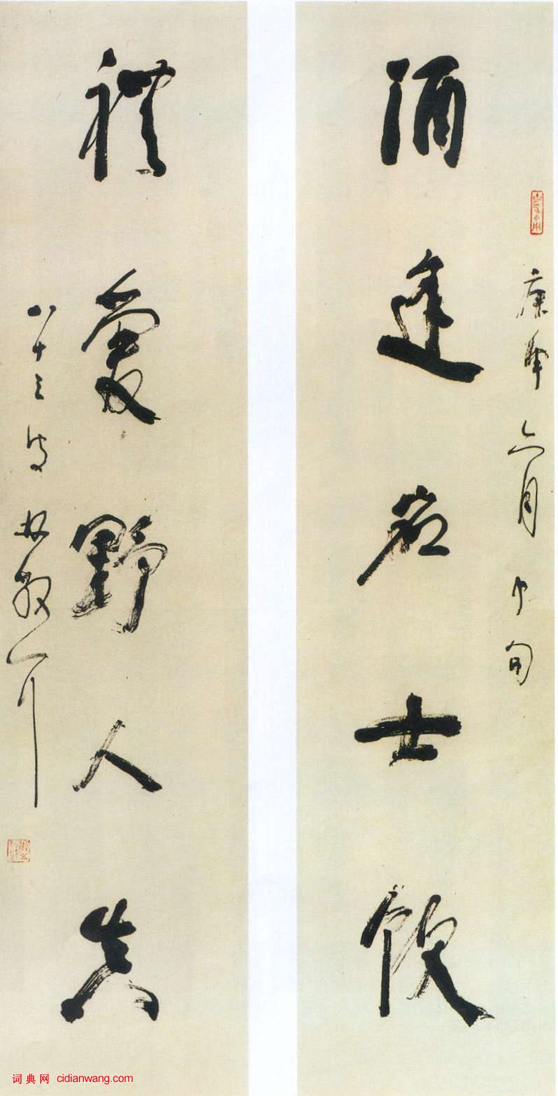 書法欣賞魏晉書法唐朝書法宋朝書法元朝書法明朝書法清朝書法近現代書法字典網>> 歷代書法>> 近現代>> 林散之行草《酒逢禮愛五言聯句》正文 林散之行草《酒逢禮愛五言聯句》作者:林散之 書體:行草 林散之《酒逢禮愛五言聯句》紙本 1980年作 釋文:酒逢名士飲,禮愛野人真。 款署:庚申六月中旬,八十三叟林散耳。 林散之的相關書法作品:林散之《隸書釋智果書頌橫幅》 林散之《隸書世界人間八言聯》 林散之《贈桑作楷草書脫俗寫生七言聯》 林散之行草《自作詩感賦》 草聖林散之書法用筆50條! 林散之行草《其大我志八言聯》 林散之《贈朱小平草書脫俗寫生七言聯》 林散之《楷書節錄智果書頌》 林散之跋黃賓虹《黃山臥遊》 相關文章:楊峴《隸書四屏》 (隸書)楊峴《隸書四屏》133.0×33.0cm 美國弗利爾美術館藏 ...柳公權小楷《九疑山賦》 (小楷)《九疑山賦》由邵建和鐫刻,刀法自然,非常精微。柳公權書寫的很多碑,都是邵建和鐫刻...釋擔當·春來草書軸 (草書)【釋文】春來無日不狂游,折得梅花插滿頭。一來為僧天教我,而今七十當風流。擔當。釋...蘇解篆書《蘇解為陶蓋文》 (篆書)這是一幀極為珍貴和饒有趣味的陶刻文字拓片,陶蓋文曰:“蘇解為”。據近人陳邦懷先生...王鐸草書《臨王獻之省前書帖軸》之二 (草書)王鐸《臨王獻之省前書帖軸》1647年作 縱164cm 橫50cm 開封市博物館藏...龔賢《行書經故里詩扇》 (行書)龔賢《行書“經故里”詩扇》 上海博物館藏 釋文:歸來非遠客,下馬淚雙垂。故里宛...傅山《行書韋應物詠春雪詩》 (行書)傅山《行書韋應物詠春雪詩》綾本 190×54cm 山東省博物館藏 ...康里巎巎行書跋趙孟頫《太上老君說常清靜經》 (行書)康里巎巎 跋趙孟頫《太上老君說常清靜經》 行書 30.2×161.3cm 至正...劉墉行書《食筍截筒七言聯》 (行書)劉墉《食筍截筒七言聯》紙本行書 132.8×30.6cm×2 台北故宮博物院...何紹基行書《詠落花七律十五章》 (行書)何紹基行書《詠落花七律十五章》:同治四年乙丑(一八六五)春天,何紹基(1799-...