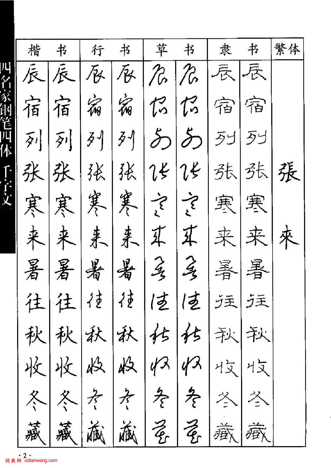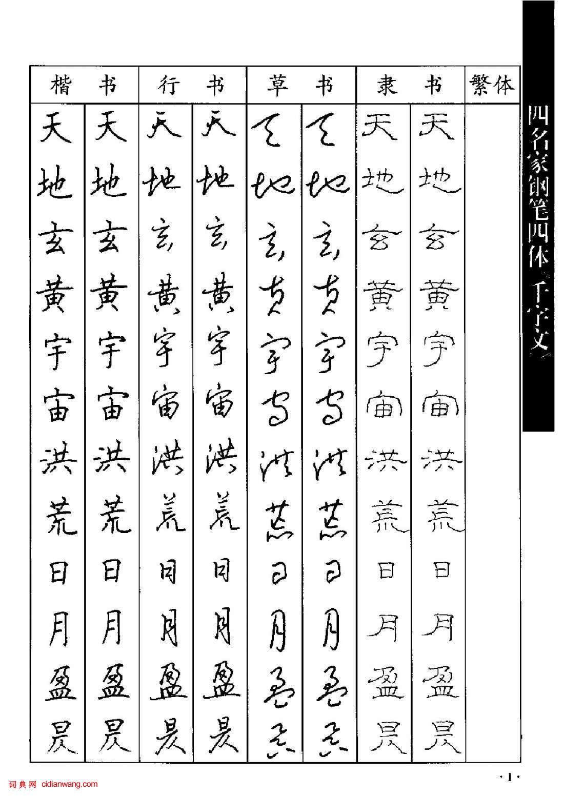 名家鋼筆楷、行、草、隸四體千字文字帖欣賞,附有繁體字範本。