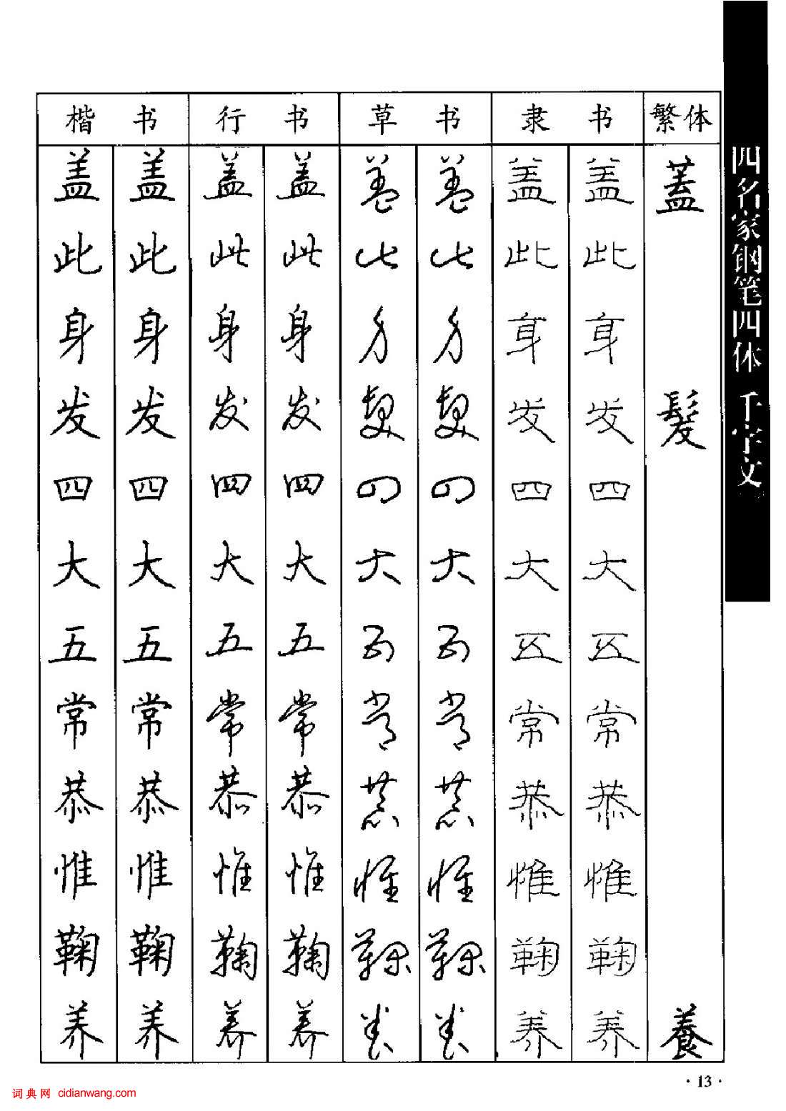書法欣賞魏晉書法唐朝書法宋朝書法元朝書法明朝書法清朝書法近現代書法字典網>> 歷代書法>> 近現代>> 顧仲安 沉鴻根等四名家鋼筆四體《千字文》(7)正文 顧仲安 沉鴻根等四名家鋼筆四體《千字文》(7)作者:顧仲安 書體:四體 首 頁 上一頁 3 4 5 6 7 8 9 10 11 12 下一頁 尾 頁相關文章:黃庭堅·致明致少府同年尺牘 (行書)【釋文】庭堅頓首。承見諭。早當過此。延佇甚久。何以不至耶。雪寒。安勝否。大軸今送...薛紹彭草書《昨日帖》 (草書)薛紹彭《昨日帖》 紙本 草書 26.9×29.5 cm 台北故宮博物院藏 ...古代名家各版《千字文》特點比較導讀:《千字文》與《心經》,是歷代書法家最愛抄寫的兩大經典,很多書法家都會抄一遍...唐寅《吳門避暑詩》 (行書)【釋文】吳門避暑不愁難,綠柳蔭濃畫舫寬。石首鮮呈黃蠟面,楊梅肥綻紫金丸。密遮竹葉...武威漢簡·儀禮簡 (隸書)中國甘肅省武威市漢墓中出土的簡牘。統稱武威漢簡。1959年,人們在武威磨嘴子墓群...蘇軾行書《歸園帖》 釋文 (行書)蘇軾《歸園帖》 北京故宮博物院藏 【歸園帖釋文】: 此確雲同歸院,亦不雲宿於院...何紹基篆書《銅鼎文屏》 (篆書)何紹基《銅鼎文屏》 紙本 湖南省博物館藏【資料來源】湖南省博物館“《還原大師》—...白玉蟾《足軒銘卷》 (草書)完整版(含題跋)【釋文】寄題足軒。奉似吾友周長高士,紫清白玉蟾。一丘一壑志願足,...張旭《心經》 (草書)張旭的《草書心經》最早見於《碑刻拔萃》,其《唐草心經》碑目下寫明張旭,此前碑林中...柳公權楷書《大唐迴元觀鐘樓銘》 (楷書)柳公權《大唐迴元觀鐘樓銘》 124×60cm 西安市和平門外出土《大唐迴元觀鍾...