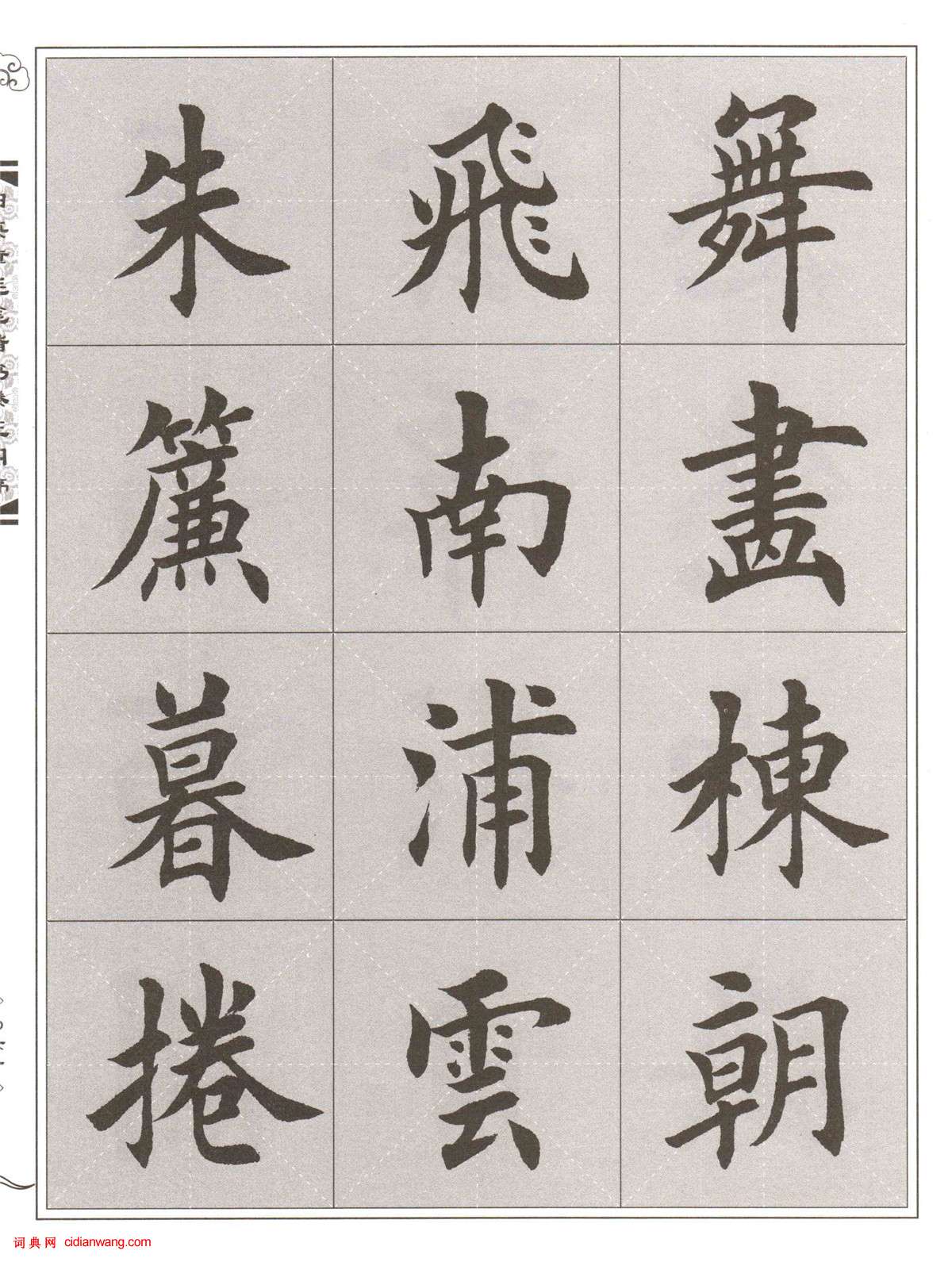 書法欣賞魏晉書法唐朝書法宋朝書法元朝書法明朝書法清朝書法近現代書法字典網>> 歷代書法>> 近現代>> 田英章楷書《滕王閣序》(27)正文 田英章楷書《滕王閣序》(27)作者:田英章 書體:楷書 首 頁 上一頁 19 20 21 22 23 24 25 26 27 28 下一頁 尾 頁田英章的相關書法作品:田英章異體字大全 田英章《解析歐體楷書結構28法》 田英章楷書《岳陽樓記》 田英章楷書《九成宮》描紅本字帖 田英章楷書《顏氏家訓》 田英章硬筆行書間架結構28法 田英章硬筆書法基礎教程 動態圖 田英章硬筆楷書間架結構28法 田英章楷書《百家姓》 相關文章:敦煌經書《大樓炭經卷第七》 (小楷)《大樓炭經卷第七》北魏延昌二年(513),敦煌鎮經生張顯昌所抄寫捲軸《大樓炭經卷...吳琚《壽父帖》 (行書)【釋文】比總總附書,諒只在下旬可到。途中收十月三日手筆並詩,深以為慰。示喻已悉,...王羲之草書《獨坐帖》 (草書)王羲之草書《獨坐帖》,4行,35字。《獨坐帖》釋文:知彼乃爾。切切!汝乃獨坐,但...劉迺中書法欣賞劉迺中字漢寬,晚號古柳逸民,居室無門限齋,男,漢族。1921年2月生於北京。幼承...三國魏隸書《受禪表碑》 (隸書)《受禪表碑》三國魏黃初(202年)刻。在河南許昌縣,額篆書題“受禪表”。字方正,...吳寬行楷《唐詩三首扇面》 (行楷)吳寬《唐詩三首扇面》紙本行楷書 成化二十二年(1486)上海博物館藏釋文:王粲...東漢隸書《賢良方正殘石》 (隸書)《賢良方正殘石》拓片 可嘉提供《賢良方正殘石》,著名的《安陽殘石》之一,為《子...王羲之行書集字對聯10幅,很養心! (行書)太美了,王羲之集字對聯10幅!一承書聖蘭亭風範,心摹手追,體勢俊逸。如清風明月,...李斯篆書《會稽刻石》 (篆書)秦始皇於三十七年(前210)十月出遊,由左丞相李斯、少子胡亥隨從,南至雲夢(今湖...米芾《清和帖》 (不詳)【釋文】芾啟。久違傾仰,夏序清和,起居何如?衰年趨召,不得久留,伏惟珍愛。米一斛...