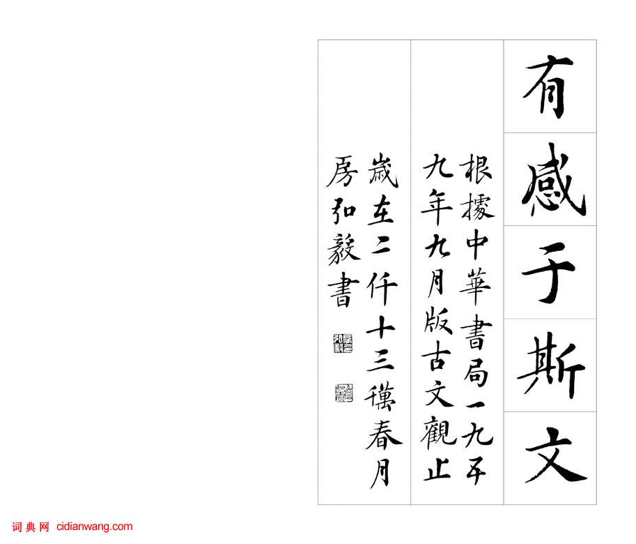 書法欣賞魏晉書法唐朝書法宋朝書法元朝書法明朝書法清朝書法近現代書法字典網>> 歷代書法>> 近現代>> 房弘毅楷書《蘭亭序》(6)正文 房弘毅楷書《蘭亭序》(6)作者:房弘毅 書體:楷書 首 頁 上一頁 1 2 3 4 5 6 房弘毅的相關書法作品:房弘毅楷書《王羲之用筆賦》 房弘毅楷書《王羲之筆勢論十二章》 房弘毅楷書《蘭亭序》 相關文章:故宮藏品,宋四家蘇黃米蔡書法蘇軾、黃庭堅、米芾、蔡襄宋代尚意書法的代表人物,蘇黃米蔡被合稱為“宋四家”,他們...顏真卿《祭侄稿》 (不詳)【釋文】維乾元元年,歲戊戌,九月,庚午朔,三日壬申,第十三叔,銀青光祿(大)夫,...徐渭行書《手札》 (行書)徐渭《行書手札》 紙本行書,台北何創時書法藝術基金會藏。 ...三國魏碑《孔羨碑》 (隸書)《孔羨碑》。又名《魯孔子廟碑》、《修孔子廟碑》、《封孔子廟碑》等,刻於三國魏黃初...唐寅行書《平康巷陌帖橫幅》 (行書)唐寅《平康巷陌帖橫幅》紙本行書 22.9×45cm 上海博物館藏 釋...趙孟頫行書《國賓山長帖卷》 (行書)趙孟頫 行書《國賓山長帖卷》 53歲 縱26.3厘米 橫103.2厘米 故宮博物...蘇軾行書《歸去來兮辭》卷 (行書)蘇軾《歸去來兮辭》卷 32 x 181.1 cm 台北故宮博物院藏 東坡書法兼得...文徵明《行草口號十首卷》 (行草)明代文徵明書法作品欣賞《行草口號十首卷》紙本,高28.5厘米,縱310.6厘米,...趙孟頫《洛神賦》 (行書)點擊查看《洛神賦》高清大圖《洛神賦》紙本,縱29.5公分,橫192.6公分,現藏...王羲之《用筆賦》及釋文王羲之的《用筆賦》原文:秦、漢、魏至今,隸書其惟鍾繇,草有黃綺、張芝,至於用筆神...