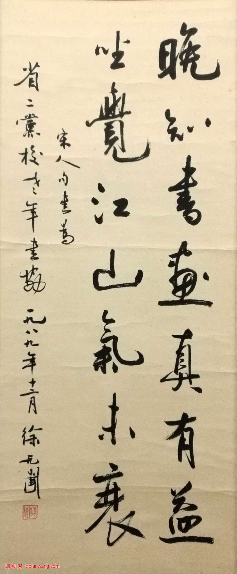 書法欣賞魏晉書法唐朝書法宋朝書法元朝書法明朝書法清朝書法近現代書法字典網>> 歷代書法>> 近現代>> 徐無聞《行書宋人句》正文 徐無聞《行書宋人句》作者:徐無聞 書體:行書 徐無聞《行書宋人句》79×31cm 1989年 北碚區美術館藏釋文:晚知書畫真有益,坐覺江山氣未衰。 款署:宋人句書為省二黨校老年書協,一九八九年十二月,徐無聞。 鈐印:無聞(朱文)徐無聞的相關書法作品:徐無聞《行書宋人句》 徐無聞篆書《戰國臨中山王三器銘文》 徐無聞《大篆在公遇事七言聯》 徐無聞行書《臨蘭亭序》 徐無聞《行書毛澤東詞中堂》 徐無聞草書題《偃竹圖》 徐無聞《草書丈雪上人句》 相關文章:吳榮光行書《錄李商隱漫成一首詩軸》 (行書)吳榮光《錄李商隱漫成一首詩軸》紙本行書 105.8×30.5cm 北京故宮博物...王鐸《行草詩稿墨跡十二頁》 (行草)釋文:京中望北山,蒼蒼得要領。每於僧舍中,延眺臻此境。人聲響已息,頗爾眾慮屏。禪...沈周《行書落花詩扇葉》 (行書)沈周《行書落花詩扇葉》灑金箋 18×48.3cm 浙江省博物館藏釋文:今日都...文徵明·行書自作詩卷 (行書)釋文立春進賀。王殿千官拜冕旒,紫衣京兆在前頭。四時盛德初臨木,先日嚴寒已送牛。氣...趙孟頫楷書《元子昂玄教宗傳碑》 (楷書)趙孟頫楷書法帖《元子昂玄教宗傳碑》非常罕見,元代趙孟頫書法勑賜玄敎宗傳之碑兩冊合...董其昌《臨米芾行書長卷》 (行書)長 270厘米,高24厘米,紙本 西安碑林博物館藏李湊·順節夫人李氏墓誌 (楷書)《順節夫人李氏墓誌》,又稱《順節夫人墓志銘並序》,此碑刻於唐天寶十年(751年)...王庭筠·題《幽竹枯槎圖》卷 (行書)【釋文】黃華山真隱,一行涉世,便覺俗狀可憎,時拈禿筆作幽竹枯槎,以自料理耳。王庭...金聖歎《行書語摘軸》 (行書)【釋文】消磨傲骨惟長揖,洗髮雄心在半酣。順治戊子二月四日,金聖歎。金聖歎《行書語...梁啓超《贈允之楷書軸》 (楷書)梁啓超《贈允之楷書軸》楷書 124×31cm 嘉定博物館藏釋文:公之雲令德音孔...