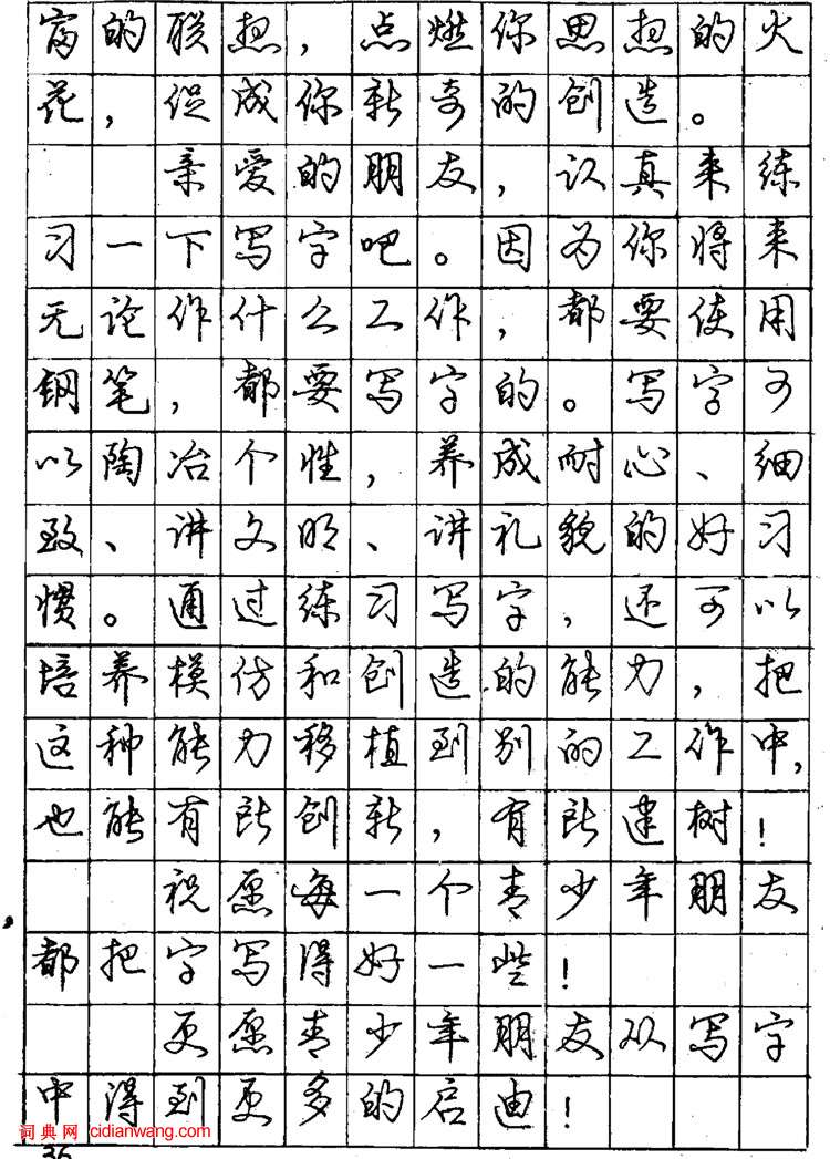 資源下載魏晉書法唐朝書法宋朝書法元朝書法明朝書法清朝書法近現代書法字典網>> 歷代書法>> 近現代>> 龐中華硬筆行書字帖《怎樣練習鋼筆行書字》(18)正文 龐中華硬筆行書字帖《怎樣練習鋼筆行書字》(18)作者:龐中華 書體:行書 首 頁 上一頁 9 10 11 12 13 14 15 16 17 18 全文2017-9-16 11:31:21 龐中華的相關書法作品:龐中華鋼筆行書字帖《現代漢語7000通用字》 龐中華鋼筆行書《使用率最高的字》 龐中華硬筆行書字帖《怎樣練習鋼筆行書字》 龐中華鋼筆字帖《鋼筆書法暢想》 相關文章:吳雲·跋《爨龍顏碑》 (隸書)吳雲跋《爨龍顏碑》,隸書。書法百則,書法金句100條(1)古之善書者多壽,心定故也。人能定其心,何事不可為。(2)書法亦就佛法,始於...張即之楷書《王禹偁待漏院記卷》 (楷書)張即之《書王禹偁待漏院記卷》皮紙楷書 41.5×2665.5cm 上海博物館藏...歷代書法家筆下的“父親”歷代書法家筆下的“父親”書法欣賞,借字獻爹,祝爸爸父親節快樂!董其昌·跋米友仁《瀟湘奇觀圖》 (行書)董其昌跋米友仁《瀟湘奇觀圖》,縱19.8cm,故宮博物館藏。題跋前後共三段。文徵明·跋張即之《汪氏報本庵記》 (楷書)文徵明跋張即之《汪氏報本庵記》,楷書。遼寧省博物館藏。張即之《汪氏報本庵記》,紙...蘇軾行書《近人帖》 (行書)蘇軾行書墨跡《近人帖》,上海張氏涵廬舊藏。釋文:蘇軾啟近人回奉狀必達比日履茲起居...北魏《楊大眼造像記》 (楷書)《楊大眼造像記》,全稱《輔國將軍楊大眼為孝文皇帝造像記》,簡稱《楊大眼》,刻於北...胡林翼《行書四屏》 (行書)胡林翼《行書四屏》 湖南省博物館 藏釋文:窗影搖群動,牆陰載一峰。野壚風自爇,山...李方膺行書題《荷花圖》 (行書)李方膺《荷花圖》 133.5×44.8cm 乾隆八年(1743年)作 嘉德20...