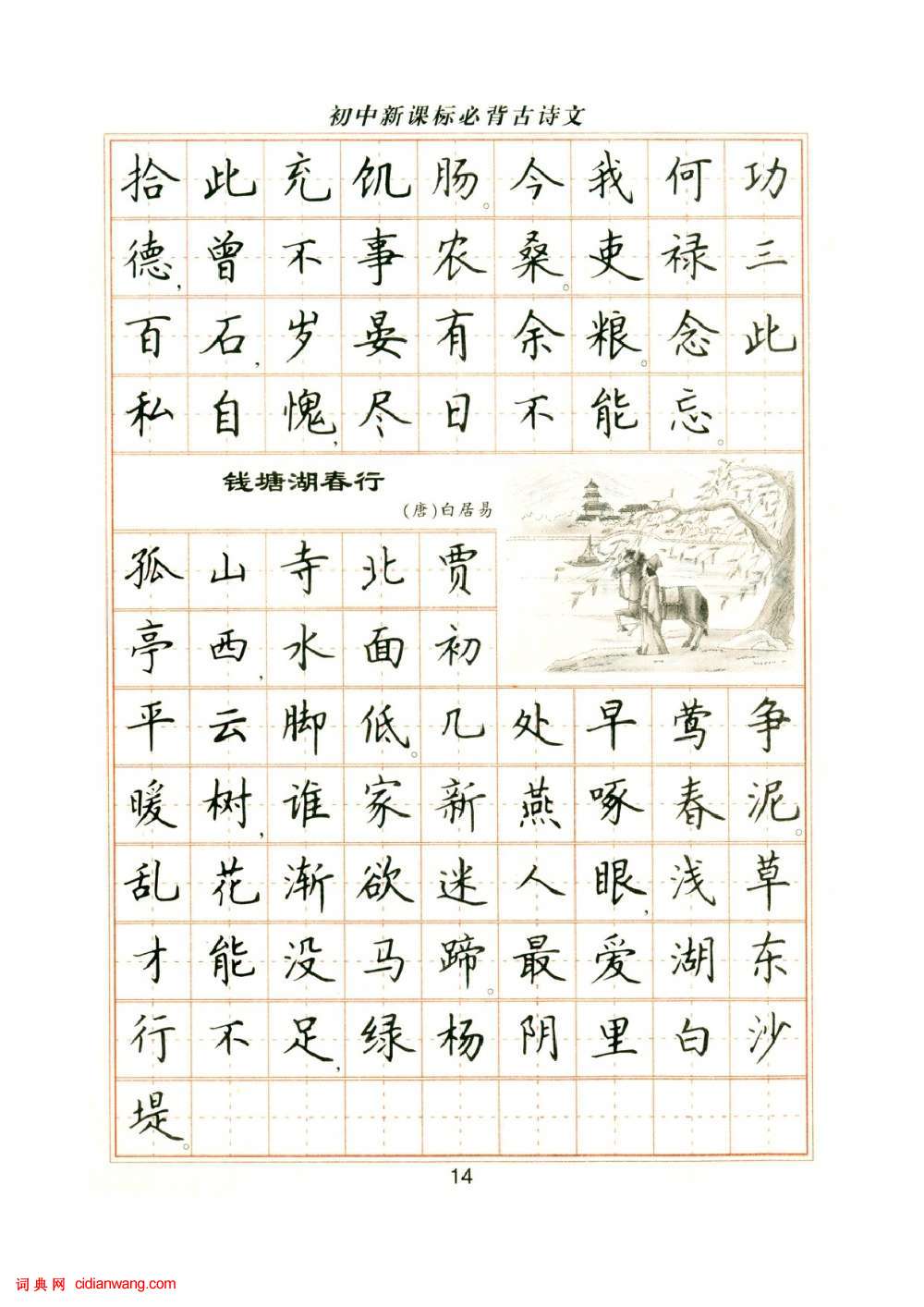 資源下載魏晉書法唐朝書法宋朝書法元朝書法明朝書法清朝書法近現代書法字典網>> 歷代書法>> 近現代>> 盧中南硬筆楷書字帖《國中新課標必背古詩文》(5)正文 盧中南硬筆楷書字帖《國中新課標必背古詩文》(5)作者:盧中南 書體:楷書 首 頁 上一頁 1 2 3 4 5 6 7 8 9 10 下一頁 尾 頁 全文2017-9-16 13:45:06 盧中南的相關書法作品:盧中南《故宮百聯》 盧中南硬筆楷書《臨歐陽詢皇甫誕碑》 盧中南楷書《書法雅言》 盧中南楷書《中國成語300句》 盧中南楷書《題衛夫人筆陣圖後》 盧中南楷書《蘭亭序》 盧中南硬筆《楷書5000常用字》 盧中南硬筆楷書字帖《國中新課標必背古詩文》 盧中南楷書對聯 相關文章:龔璛·靜春堂詩序 (行楷)《靜春堂詩序》卷,元,龔璛書,紙本,縱31.2cm,橫151cm,行楷書。北京故...陶浚宣魏書《王君墓誌》|陶浚宣陶浚宣(1846—1912),原名祖望,字文沖,號心雲,別號東湖居士,又...米芾《賀鑄帖》 (行書)【釋文】芾再啟。賀鑄能道/行樂慰人意。玉筆格/十襲收秘,何如兩足/其好。人生幾何...趙孟頫行書《千字文》 (行書)趙孟頫行書千字文為絹本,縱二百六十五毫米,橫三千七百三十四毫米,藏於故宮博物院。...陸恭·跋褚遂良《孟法師碑》 (楷書)陸恭跋褚遂良《孟法師碑》,楷書。汪士慎隸書《詠牽牛花軸》 (隸書)汪士慎《隸書詠牽牛花軸》紙本隸書 98.5×37cm 上海博物館藏釋文:竹樹交...于右任《草書呂子語軸 》 (草書)于右任《草書呂子語軸 》紙本草書 138×34cm 南京市博物館藏釋文:無愧於...趙佶《草書紈扇》 (草書)趙佶《草書紈扇》 絹本 直徑28.4厘米 上海博物館藏 趙佶草書紈扇,是一件非常...沈周《行書自作詩卷》 (行書)沈周《行書自作詩卷》紙本行書 34×97.3cm 南京博物院藏釋文:老夫裹足...蘇軾行書《廷平郭君帖》 (行書)蘇軾《廷平郭君帖》 書於1071年(熙寧四年) 行書釋文:軾啟 辱教 具審孝履支...