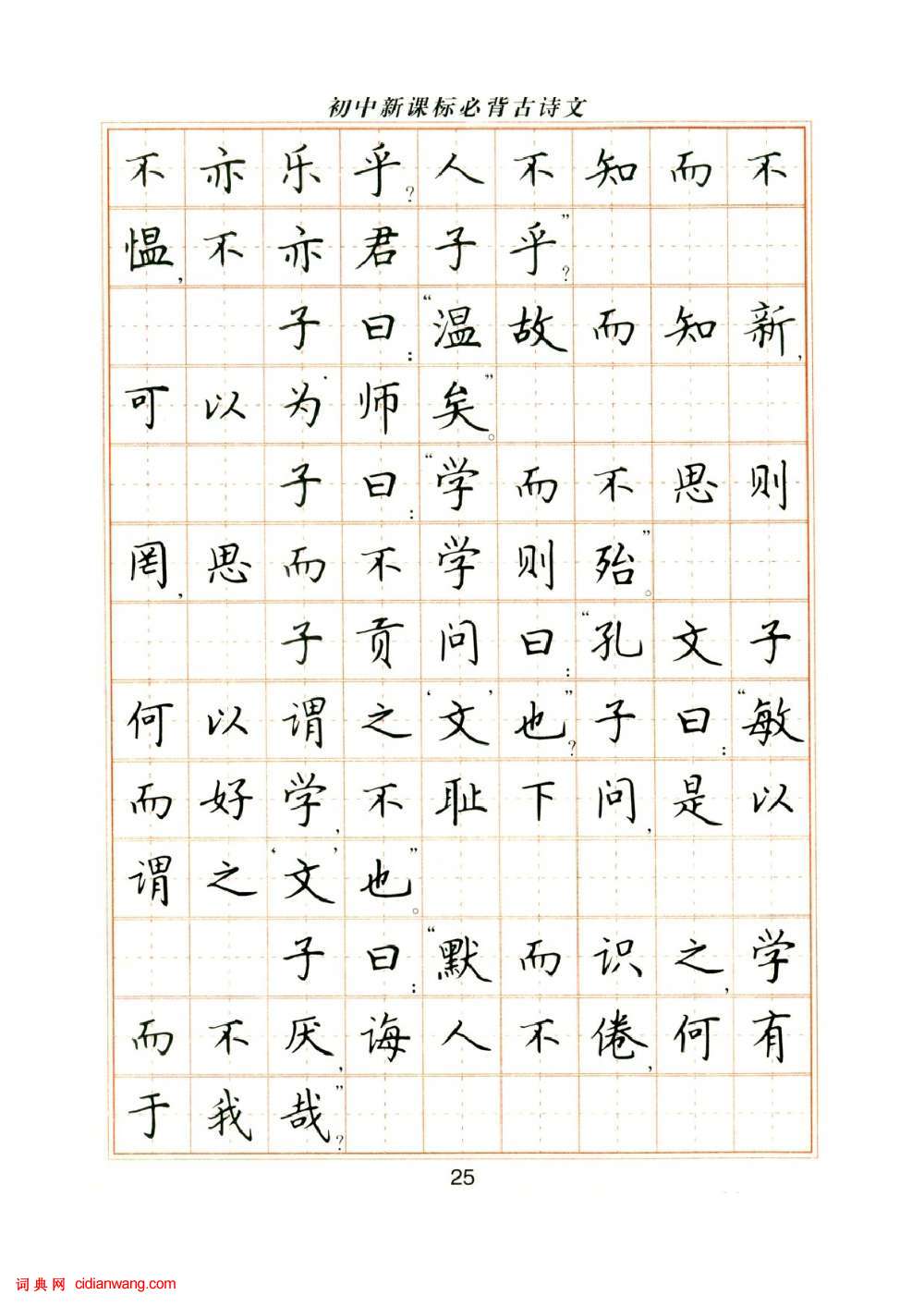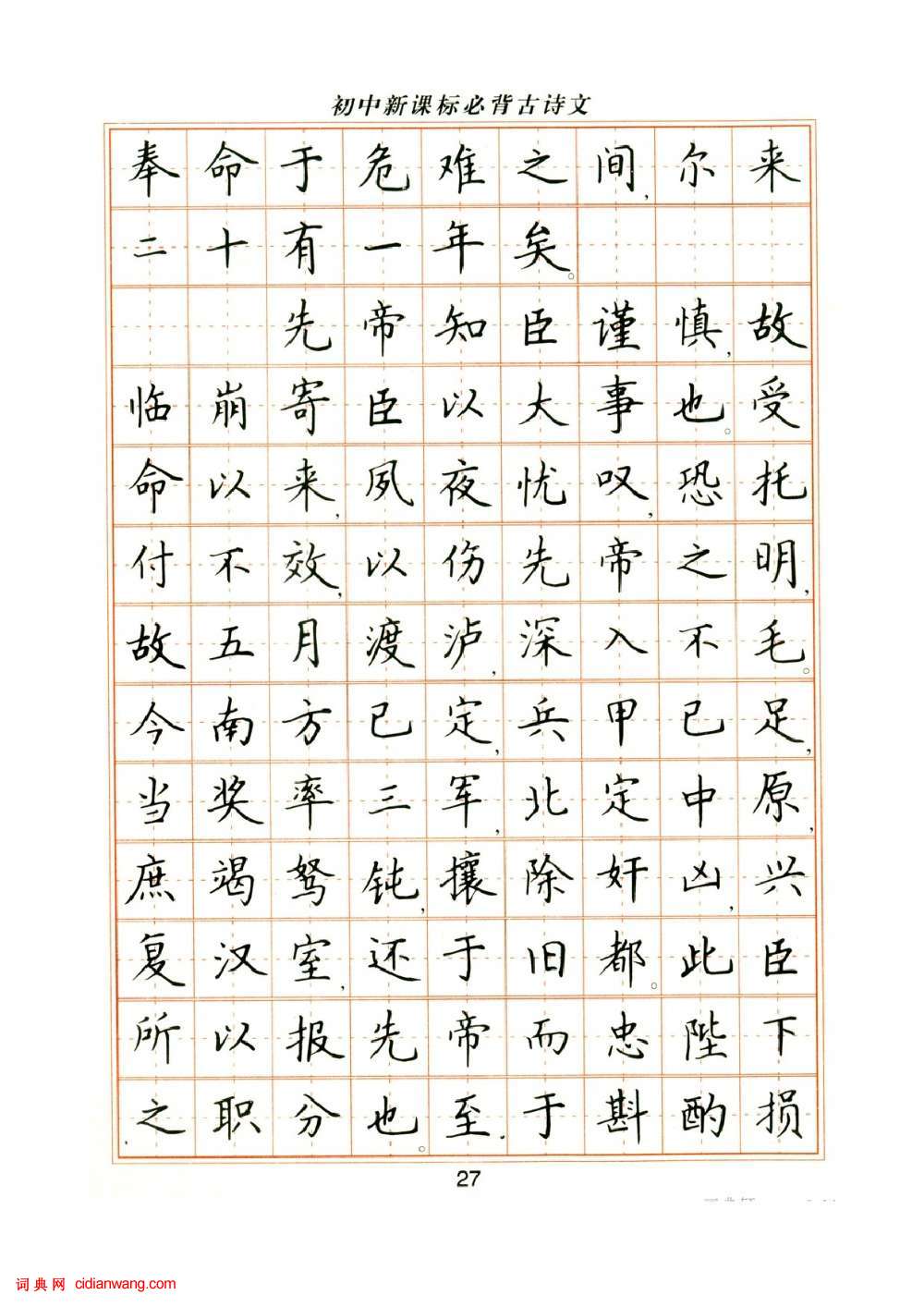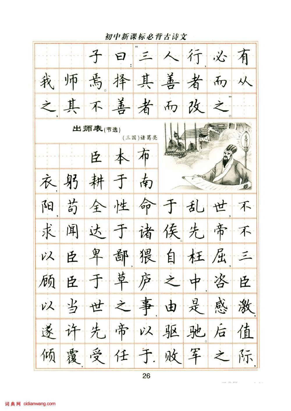 資源下載魏晉書法唐朝書法宋朝書法元朝書法明朝書法清朝書法近現代書法字典網>> 歷代書法>> 近現代>> 盧中南硬筆楷書字帖《國中新課標必背古詩文》(9)正文 盧中南硬筆楷書字帖《國中新課標必背古詩文》(9)作者:盧中南 書體:楷書 首 頁 上一頁 5 6 7 8 9 10 11 12 13 14 下一頁 尾 頁 全文2017-9-16 13:45:06 盧中南的相關書法作品:盧中南硬筆楷書《臨歐陽詢皇甫誕碑》 盧中南楷書對聯 盧中南鋼筆臨歐陽詢《虞恭公溫彥博碑》 盧中南楷書《白居易長恨歌》 盧中南楷書《書法雅言》 盧中南楷書《題衛夫人筆陣圖後》 盧中南硬筆《楷書5000常用字》 盧中南硬筆楷書字帖《國中新課標必背古詩文》 盧中南楷書《中國成語300句》 相關文章:田蘊章楷書字帖300字 (楷書)《田蘊章楷書300字》里大多數的字在之前的每日一題每日一字里都有講到,而且都帶有...書法千萬不要忽視布局!書法作品由正文、落款及印章三部分構成,將其三個部分有機地結合在一起,進行總體的安...鮮于樞行草《醉時歌等唐人詩十二首》 (行草)鮮于樞冊頁行書《醉時歌等唐人詩十二首》,台北故宮博物院藏。《醉時歌等唐人詩十二首...宋徽宗趙佶題《唐十八學士圖卷》 (楷書)宋徽宗題《唐十八學士圖卷》,瘦金體,絹本 本幅29.4×519cm 台北故宮博...董其昌行草《杜甫因許八奉寄江寧旻上人詩軸》 (行草)董其昌《行草書杜甫因許八奉寄江寧旻上人詩軸》紙本行草書 115×43.5cm ...翁方綱·行書七言詩 (行書)翁方綱 癸丑(1793年)作 行書七言詩 立軸。褚遂良小楷《文皇哀冊》 (小楷)《文皇哀冊》在傳世的小楷作品中,久負盛名。相傳為真跡,但文稿後並無書人落款。據古...西漢隸書《馬王堆帛書》 (隸書)湖南省博物館藏 1973年在湖南長沙馬王堆三號漢墓出土。包括《戰國策縱橫家書》、...唐寅行書《七律四首詩卷》 (行書)唐寅《行書七律四首詩卷》紙本行書 23×286cm 天津博物館藏釋文:聞太原閣...黃侃《隸書已煩更與七言聯》 (隸書)黃侃《隸書已煩更與七言聯》 132×22.2cm×2 1924年作 湖北省博...