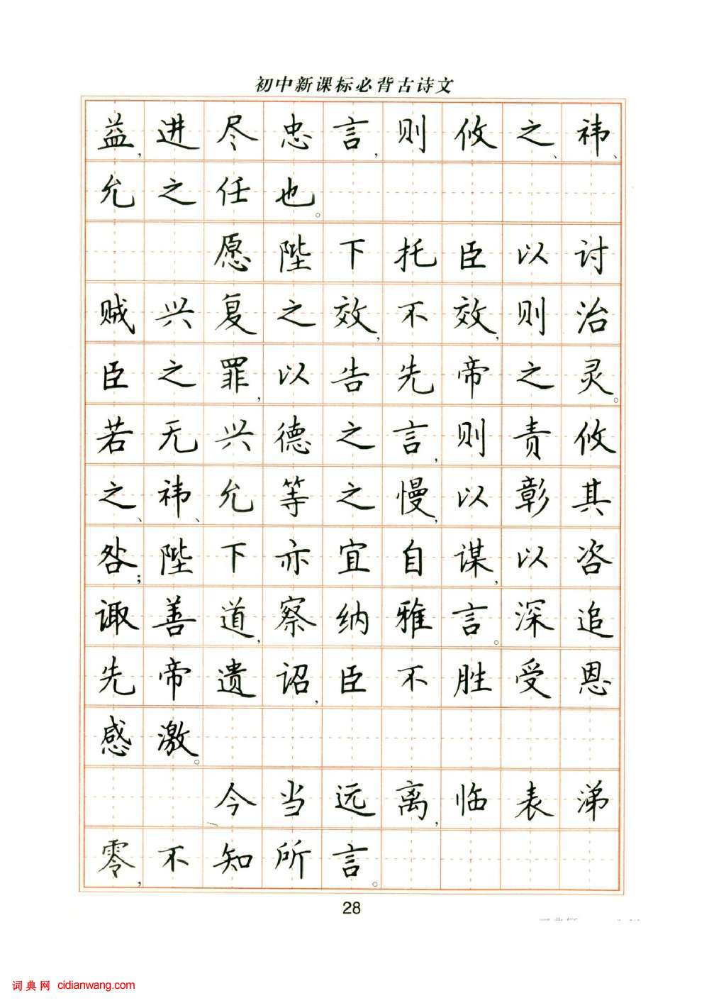 資源下載魏晉書法唐朝書法宋朝書法元朝書法明朝書法清朝書法近現代書法字典網>> 歷代書法>> 近現代>> 盧中南硬筆楷書字帖《國中新課標必背古詩文》(10)正文 盧中南硬筆楷書字帖《國中新課標必背古詩文》(10)作者:盧中南 書體:楷書 首 頁 上一頁 6 7 8 9 10 11 12 13 14 15 下一頁 尾 頁 全文2017-9-16 13:45:06 盧中南的相關書法作品:盧中南楷書對聯 盧中南楷書《蘭亭序》 盧中南楷書《書法雅言》 盧中南楷書《中國成語300句》 盧中南硬筆楷書《臨歐陽詢皇甫誕碑》 盧中南《故宮百聯》 盧中南硬筆楷書字帖《國中新課標必背古詩文》 盧中南楷書《白居易長恨歌》 盧中南鋼筆臨歐陽詢《虞恭公溫彥博碑》 相關文章:文徵明行書《心經》 (行書)《心經》,全稱為《般若波羅蜜多心經》,是漢傳佛經中最短的一部,因其旨意精微且便於...朱熹《卜築帖》 (行書)【卜築帖釋文】熹頓首拜覆:竊聞卜築鍾山,以便親養,去囂塵而就淸曠,使前日之所暫游...徐三庚《篆書儀表瑾瑜八言聯》 (篆書)徐三庚《篆書儀表瑾瑜八言聯》 私人藏釋文:儀表外明風神內照,瑾瑜比潔日月爭光。 ...吳昌碩《篆書樹角花陰七言聯》 (篆書)吳昌碩《篆書樹角花陰七言聯》 133×31cm×2 1918年 西泠印社藏 ...趙孟頫·前赤壁賦 (行書)趙孟頫書蘇軾《前後赤壁賦》,並作東坡像於卷首。台北故宮博物院藏。《前後赤壁賦》紙...莫友芝《篆書易經繫辭屏》 (篆書)莫友芝《篆書易經繫辭屏》 紙本篆書 133×30cm×4 深圳市博物館藏釋文...祝允明《樂志論草書軸》 (草書)祝允明《樂志論草書軸》 縱111.2厘米 橫29.3厘米 蘇州博物館藏圖片來自《...王羲之行書集字對聯10幅,很養心! (行書)太美了,王羲之集字對聯10幅!一承書聖蘭亭風範,心摹手追,體勢俊逸。如清風明月,...張宇初·跋《宋拓黃庭經》 (楷書)【釋文】右黃庭經一帖。嘗聞之前輩在元盛時吾山所藏。迨八十餘本。於中此本最為精善。...東晉楷書《謝鯤墓誌》 (楷書)《謝鯤墓誌》,1964年9月10日,出土於南京中華門外戚家山殘墓中。橫腰被推土機...