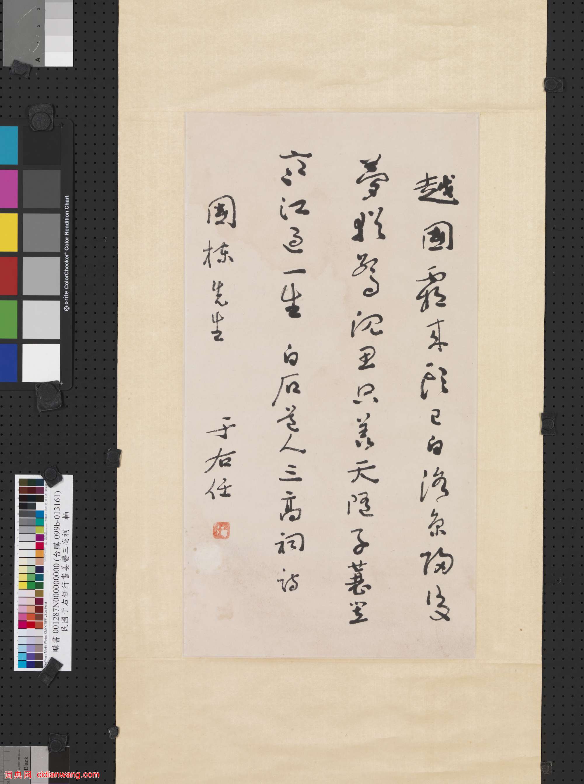 款署:白石道人三高祠詩。國棟先生。于右任。