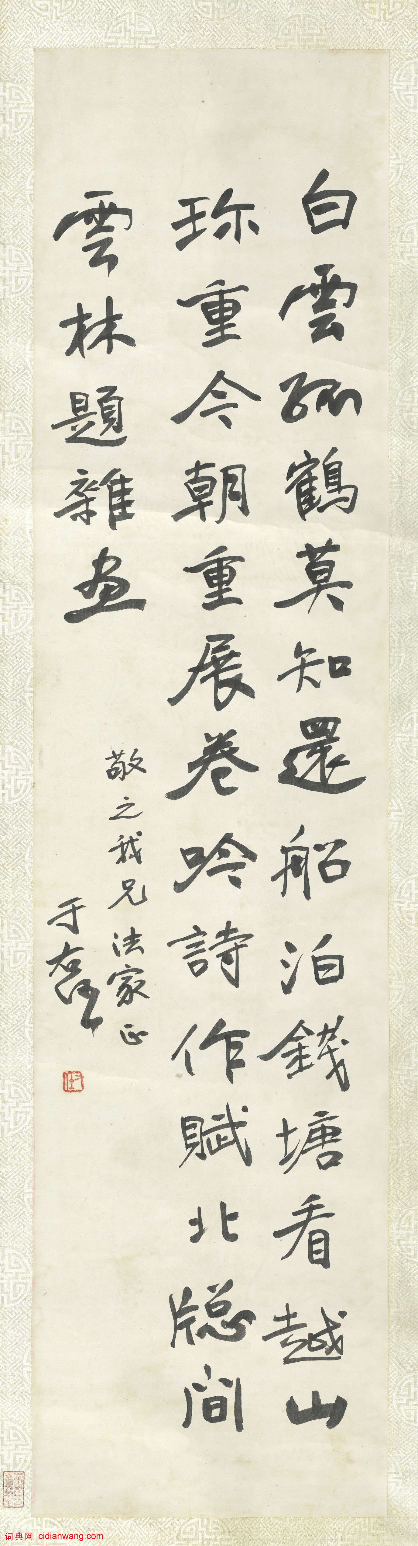 王鴻緒《行書杜甫詩軸》紙本行書 95×56cm 重慶市博物館藏。釋文:十日畫一...