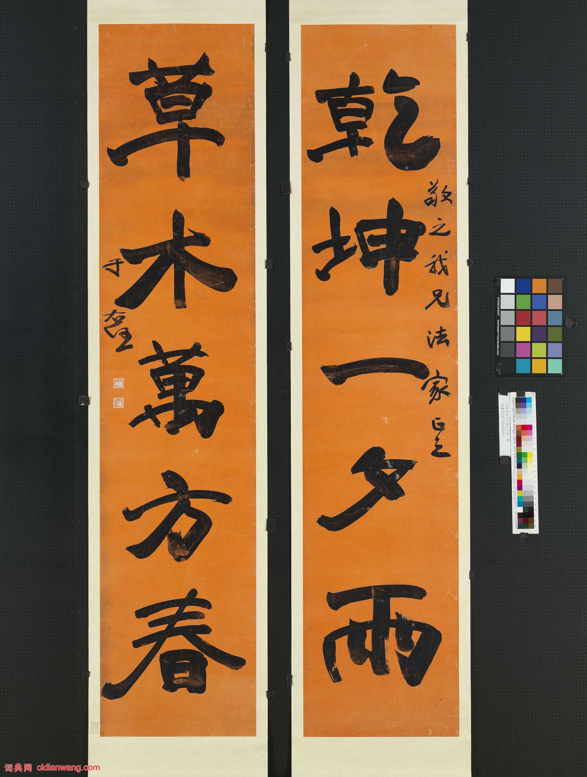 于右任《行書乾坤草木五言聯》蠟箋本行書 206.2×45.1cm 台北故宮博物院藏