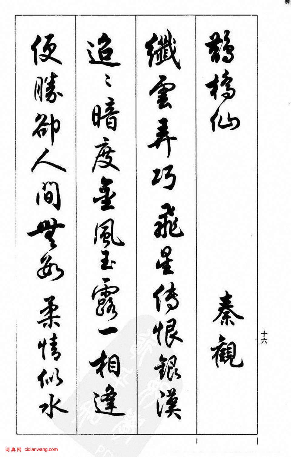資源下載魏晉書法唐朝書法宋朝書法元朝書法明朝書法清朝書法近現代書法字典網>> 歷代書法>> 近現代>> 任政行書《蘭齋宋詞行書帖》(6)正文 任政行書《蘭齋宋詞行書帖》(6)作者:任政 書體:行書 首 頁 上一頁 2 3 4 5 6 7 8 9 10 11 下一頁 尾 頁 全文2017-11-15 8:45:58 任政的相關書法作品:任政《楷書基本筆法》原稿 任政《楷書基本點畫筆法》 任政行書《蘭齋宋詞行書帖》 相關文章:陳洪綬行草《七絕詩扇面》 (行草)陳洪綬《行草七絕詩》扇面 紙本 約順治六年(約1649)安徽省博物館藏釋文:舊...梁啓超楷書對聯 (楷書)釋文:明月相思隔雲鳥,暮年心事許沙鷗。丁卯六月 梁啓超 雖然,...蔡襄行楷《虛堂詩帖》 (行楷)蔡襄《虛堂詩帖》 1048年 紙本 22.6cm X16cm 藏故宮博物院。帖...傅山《草書憑高瞰迥天怡心七言詩帖》 (草書)傅山 《草書憑高瞰迥天怡心七言詩帖》軸 紙本 113.5cm×53.5cm...曹秀先《行書軸》 (行書)曹秀先《行書軸》紙本行書 97×46.1cm 常州市博物館藏釋 文:青精之飯,...奚岡行書《錄論書語扇面》 (行書)奚岡《行書錄論書語扇面》紙本行書 17.8×52.2cm 北京故宮博物院藏 釋...倪瓚楷書《呈履道先生詩札》 (楷書)倪瓚《呈履道先生詩札》,紙本,楷書, 香港中文大學藏 釋文:(七)瓚□,月末得■...胡儼·跋歐陽修《集古錄跋尾》 (行書)胡儼跋歐陽修《集古錄跋尾》,台灣故宮博物院收藏。《集古錄跋尾》歐陽修書,行書,金...沈荃《行書臨爭座位帖軸》 (行書)沈荃《行書臨爭座位帖軸》綾本行書 238×50cm 天津博物院藏 【資料來源】...崔瑗草書《賢女帖》 (草書)崔瑗字子玉,涿郡安平(今屬河北)人。東漢學者、書法家。早孤,鋭志好學,師從賈逵,...