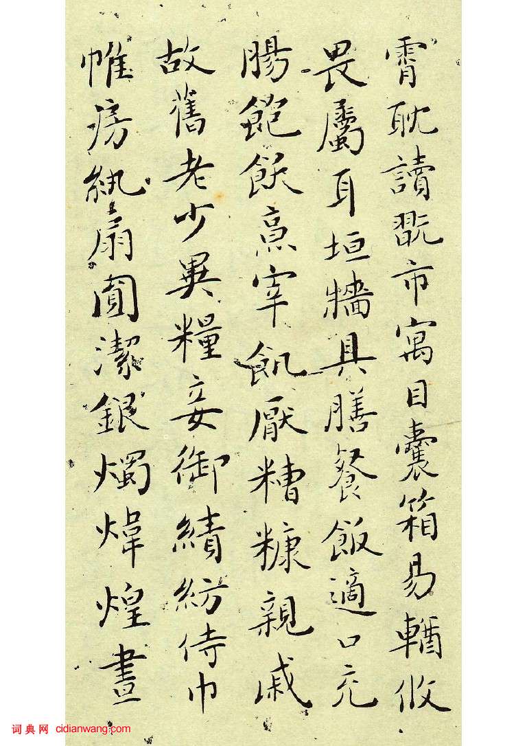 資源下載魏晉書法唐朝書法宋朝書法元朝書法明朝書法清朝書法近現代書法字典網>> 歷代書法>> 近現代>> 吳玉如小楷《千字文》(6)正文 吳玉如小楷《千字文》(6)作者:吳玉如 書體:小楷 首 頁 上一頁 1 2 3 4 5 6 7 下一頁 尾 頁 全文2017-11-22 19:01:40 吳玉如的相關書法作品:吳玉如《行書札記》 吳玉如行書《錄宋方回詩三首扇》 吳玉如《篆書條幅》 吳玉如小楷《千字文》 吳玉如楷書《杜甫瘦馬行》 吳玉如《楷書毛澤東詩軸》 吳玉如《楷書周密點絳唇詞一首》 吳玉如楷書《錄宋方回詩二首扇》 吳玉如小楷《臨樂毅論》 相關文章:文徵明行書《心經》 (行書)《心經》,全稱為《般若波羅蜜多心經》,是漢傳佛經中最短的一部,因其旨意精微且便於...翁方綱《隸書池上竹間七言聯》 (隸書)翁方綱《隸書池上竹間七言聯》紙本隸書 124×25.5cm×2 瀋陽故宮博物...趙佶楷書《大觀聖作之碑》 (楷書)(北宋)宋徽宗趙佶瘦金體書法《大觀聖作之碑》,此碑書於大觀二年(1108年),趙...陳淳草書《雪夜對客五言詩扇面》 (草書)陳淳《雪夜對客五言詩扇面》草書 台北故宮博物院藏釋文:獨臥滄江上,風高雪復深。故...翁方綱·隸書王昶神道碑 (隸書)翁方綱 隸書王昶神道碑,立軸,水墨紙本,182.2×117.5cm。曾經近代名...王僧虔《王琰帖》 (楷書)【釋文】太子舍人王琰 牒。在職三載,家貧,仰希江 郢所統小郡,謹牒。 七月廿四日...長沙窯詩文壺《一暑寒梅南北枝》 (行書)行書——青釉褐彩“一暑(樹)寒梅南北枝”詩文壺(局部) 殘高13厘米 湖南省博...趙佶楷書《御題五色鸚鵡圖》 (楷書)趙佶《御題五色鸚鵡圖》絹本設色 53.3×125.1cm 美國波士頓藝術博物館...譚延闓《散盡老來七言聯》 (行書)譚延闓《散盡老來七言聯》紙本行書 176.2×45.7cm×2 台北故宮博物...周天球行書《錄沈佺期詩扇》 (行書)周天球《錄沈佺期詩扇》行書 南京博物院藏釋文:天長地闊嶺頭分,去國離家見白雲。洛...