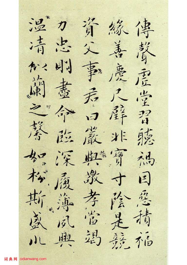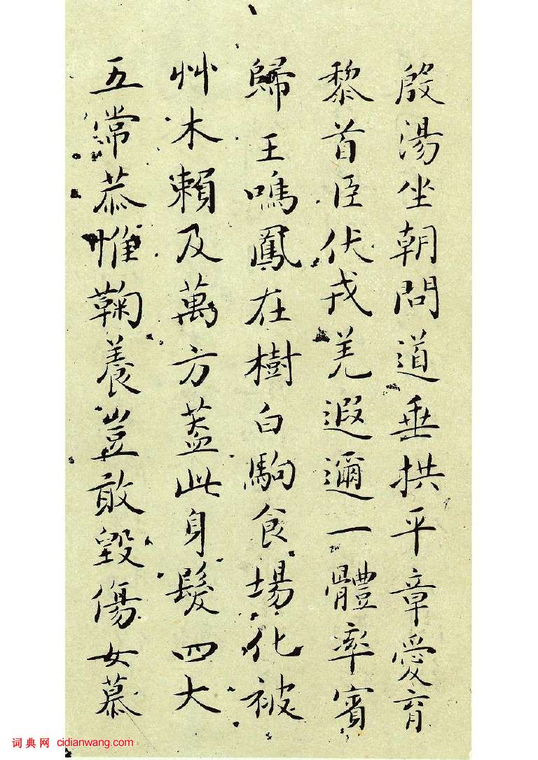 資源下載魏晉書法唐朝書法宋朝書法元朝書法明朝書法清朝書法近現代書法字典網>> 歷代書法>> 近現代>> 吳玉如小楷《千字文》正文 吳玉如小楷《千字文》作者:吳玉如 書體:小楷 當代書法大師吳玉如(1898-1982)小楷千字文作品欣賞,天津市茂林書法學院編印,原件是書寫在灑金紙上,金點不套色,故有黑點。2017-11-22 19:01:40 吳玉如的相關書法作品:吳玉如楷書《杜甫瘦馬行》 吳玉如《楷書周密點絳唇詞一首》 吳玉如楷書《錄宋方回詩二首扇》 吳玉如《楷書毛澤東詩軸》 吳玉如行書《錄宋方回詩三首扇》 吳玉如《篆書條幅》 吳玉如小楷《千字文》 吳玉如《行書札記》 吳玉如小楷《臨樂毅論》 相關文章:米芾行書《天馬賦》 (行書)在米芾傳世的作品中,《天馬賦》被康熙譽為“前無古人”,該作品淋漓痛快,雋雅奇變,...韓元吉跋歐陽修《集古錄跋》 (行楷)韓元吉 跋歐陽修《集古錄跋》 台北故宮博物院藏釋文:歐陽文忠公集古所錄。蓋千卷也...寫楷書方法,寫好楷書15招1、楷書當以沉靜為本,即用筆精到細膩,鋒勢備全,筆形到位,結字熨帖,有雍容自如之...陳淳·《荷花小鳥圖》題跋 (行書)陳淳《荷花小鳥圖》題跋,水墨紙本。啟功行書題簽欣賞 (行書)啟功值得敬重的不只是字,更是理論學識。啟功題簽欣賞:韓絳行書《絳偶成拙頌寄沖師長老詩》 (行書)釋文:《絳偶成拙頌寄沖師長老》:承師一指便心空,萬象森羅觸處通。 別後自它知不隔...金農隸書《范石湖先生句》 (隸書)隸書范石湖先生句 年代不詳 紙本 縱141厘米 橫40.7厘米 福建省博物館藏徐渭《墨筆花卉卷》題款 (行書)《墨筆花卉卷》書法題款(選) 《墨筆花卉卷》書法題款(選) 《墨筆花卉卷》書法題...宗泐·跋王蒙《太白山圖》 (楷書)宗泐跋王蒙《太白山圖》,楷書,縱27厘米。現藏遼寧博物館。黃姬水《行書讀升庵太史過射陂客部詩卷》 (行書)黃姬水《行書讀升庵太史過射陂客部詩卷》紙本行書 24.5×374.8cm 上海...