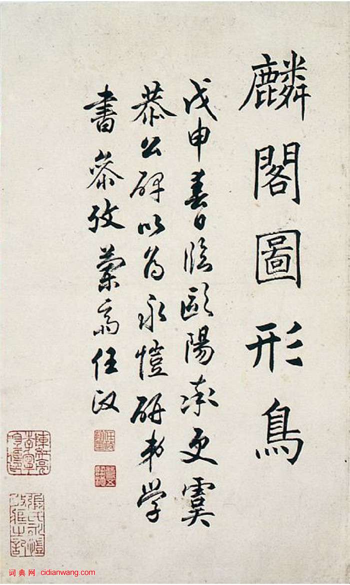 款識:戊申春日臨歐陽率更虞恭公碑,以為永愷研弟學書參考,蘭齋任政。