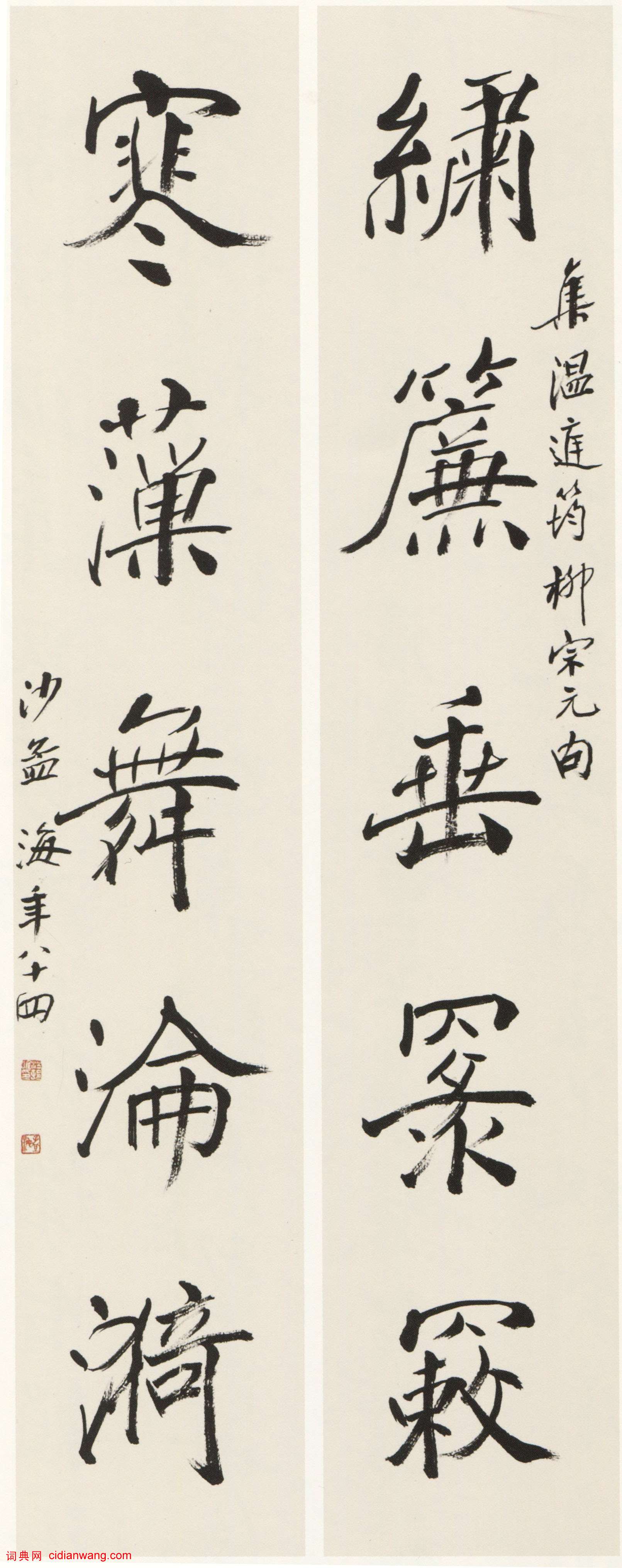沙孟海《楷書繡簾寒藻五言聯》 68×32cm 1983年