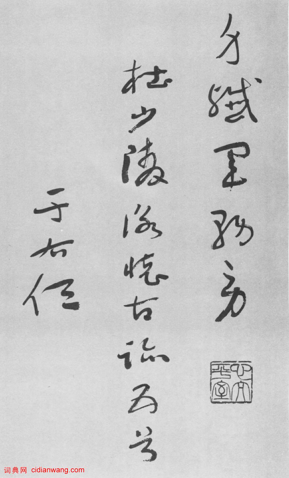 資源下載魏晉書法唐朝書法宋朝書法元朝書法明朝書法清朝書法近現代書法字典網>> 歷代書法>> 近現代>> 于右任《草書杜甫詠懷古蹟五首卷》(5)正文 于右任《草書杜甫詠懷古蹟五首卷》(5)作者:于右任 書體:草書 首 頁 上一頁 1 2 3 4 5 全文2018-1-11 19:48:22 于右任的相關書法作品:于右任《終南別業草書軸》 于右任行書《願持常與五言聯》 于右任《草書杜牧詩一首》 于右任《草書呂子語軸 》 于右任《行書稟生賦正五言聯》 于右任草書《醉歌笑讀五言聯》 于右任楷書《張清和墓志銘》 于右任《行書新詩佳句五言聯》 于右任行草《劉允丞墓誌》 相關文章:朱耷《行書題畫詩軸》 (行書)朱耷《行書題畫詩軸》紙本行書 123.7×49.8cm 上海博物館藏釋文:漢去...王羲之行書《頻有哀禍帖》 (行書)《頻有哀禍帖》摹本,紙本。縱26.9厘米。3行,20字。行書。字間傾側、俯仰、鉤...唐寅行書自題《秋菊圖》 (行書)唐寅《秋菊圖》軸 紙本水墨,135×55.5cm 天津博物館藏唐寅自題《秋菊圖...摩崖石刻《何君閣道碑》 (隸書)《何君閣道碑》《何君閣道碑》|系東漢光武帝中元二年(即公元57年)所刻。這是史有...沈曾植《行書蘇軾跋蔡帖扇》 (行書)沈曾植《行書蘇軾跋蔡帖扇》紙本行書 18×52cm 平湖市博物館藏 釋文:東坡...怎樣欣賞弘一大師的書法?導讀:不止一個人問過書法君,弘一法師的字看起來好奇怪,技法上也看不到什麼過人之處...王鐸行書《為嗇道兄書詩》 (行書)王鐸行書作品《為嗇道兄書詩》卷,綾本,自作詩五律兩首,凡四十一行,共一百二十四字...杜瓊《榮登帖》 (行楷)【釋文】吳下辱知杜瓊奉書原博狀元修譔閣下:自閣下榮登二元,名聞天下,誠不負所學如...王文治·跋李隆基《鶺鴒頌》 (行書)王文治跋李隆基《鶺鴒頌》,紙本。台北故宮博物院收藏。文徵明·小楷蓮社圖記 (小楷)文徵明小楷《蓮社圖記》冊,紙本,縱25.5厘米,橫9.8厘米。釋文:龍眠李伯時為...