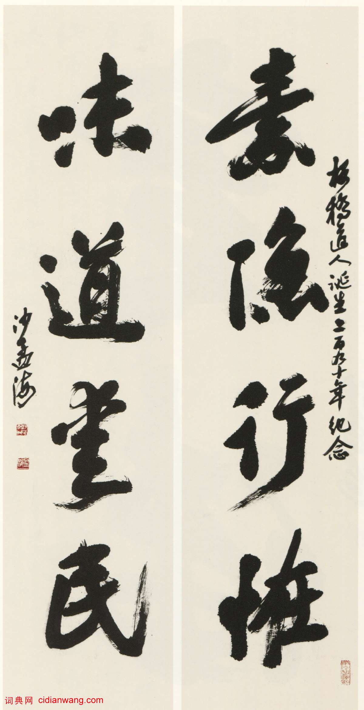 沙孟海《題興化鄭板橋紀念館四言聯》 134×33cm ×2 1983年