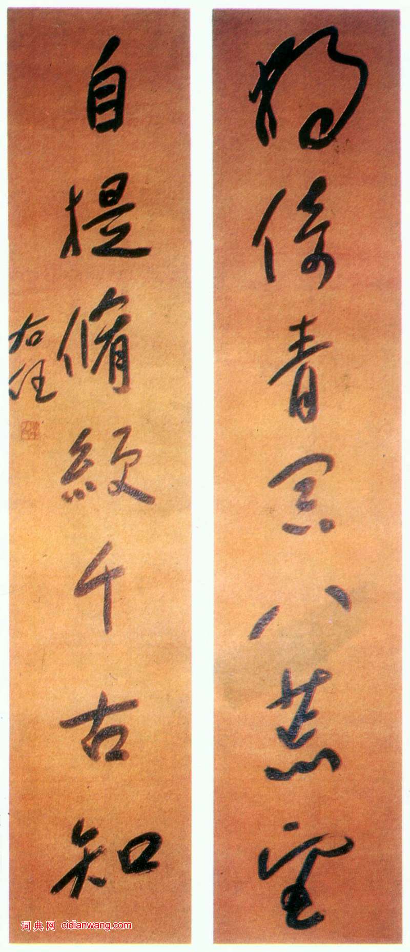 書法欣賞魏晉書法唐朝書法宋朝書法元朝書法明朝書法清朝書法近現代書法字典網>> 歷代書法>> 近現代>> 于右任草書《獨倚自提七言聯》正文 于右任草書《獨倚自提七言聯》作者:于右任 書體:草書 于右任草書《獨倚自提七言聯》, 韓國藏釋文:獨倚青冥望八荒,自提修綆千古知。右任資料來自於《中國書法》1998.62018-1-18 8:40:14 于右任的相關書法作品:于右任《草書杜牧詩一首》 于右任《草書無極顯仁五言聯》 于右任《蟲書風織行書五言聯》 于右任行書《藏書紀事詩軸》 于右任《行書姜夔三高祠軸》 于右任楷書《氣和柏老五言聯》 于右任《行書清言逸趣五言聯》 于右任《行書稟生賦正五言聯》 于右任《行書書存室有五言聯》 相關文章:雅琥楷書《跋董源夏景山口待渡圖詩一首》 (楷書)雅琥《跋董源“夏景山口待渡圖”詩一首》 紙本楷書 縱49.8cm 遼寧省博物館藏...顏真卿行書《述張長史筆法十二意》 (行書)顏真卿《述張長史筆法十二意》明拓本(傳)各縱28厘米 橫15厘米 上海朵雲軒藏釋...趙之謙《書畫扇面合景軸——隸書扇面》 (隸書)趙之謙《書畫扇面合景軸——隸書扇面》絹本 直徑23cm 浙江省博物館藏 釋文:夙...趙孟頫行書《蜀山圖歌》 (行書)趙孟頫行書《蜀山圖歌》拓本。《蜀都圖歌》墨拓本不見印行,其書跡原件亦不知所終,但...曹秀先《行書軸》 (行書)曹秀先《行書軸》紙本行書 97×46.1cm 常州市博物館藏釋 文:青精之飯,...鮮于樞·跋顏真卿祭侄文稿 (楷書)【釋文】唐太師魯公顏真卿書祭姪季明文稿,天下行書第二。余家法書第一。至元壬午春,...張弼草書《王維詩》 (草書)張弼《草書王維詩》(傳) 紙本 卷 縱155.4公分 橫61.5公分。米芾·蘇太簡參政帖 (行書)【釋文】蘇太簡參政家物,多著邳公之後四代相印,或用翰林學士院印。芾記。米芾《蘇太...王守行書《張桂岩墓志銘》卷 (行書)王守《張桂岩墓志銘》卷 紙本 行書 23 × 234 cm 天津博物館藏【釋...陳孚恩《行書八言聯》 (行書)陳孚恩《行書八言聯》灑金紙本 164×37.5 cm×2 釋文:芳草有情雁落...