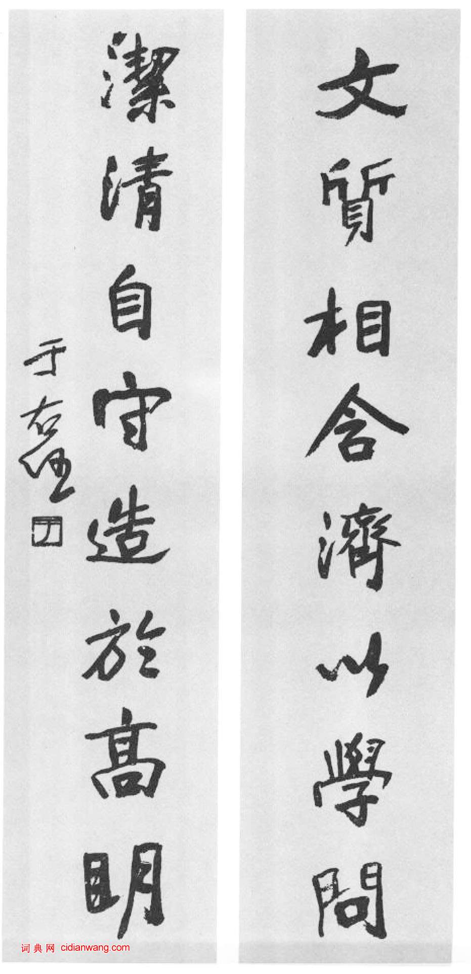 于右任《行書文質潔清八言聯》紙本行書 133×33.5cm×2