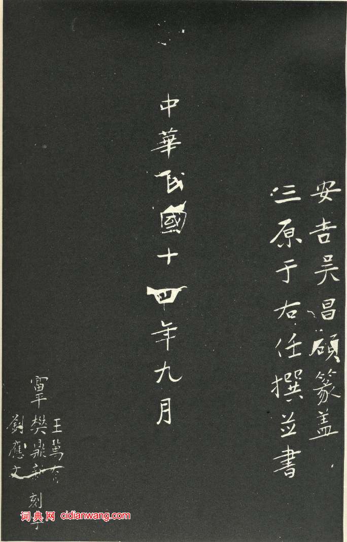 吉安吳昌碩篆蓋,三原于右任撰並書