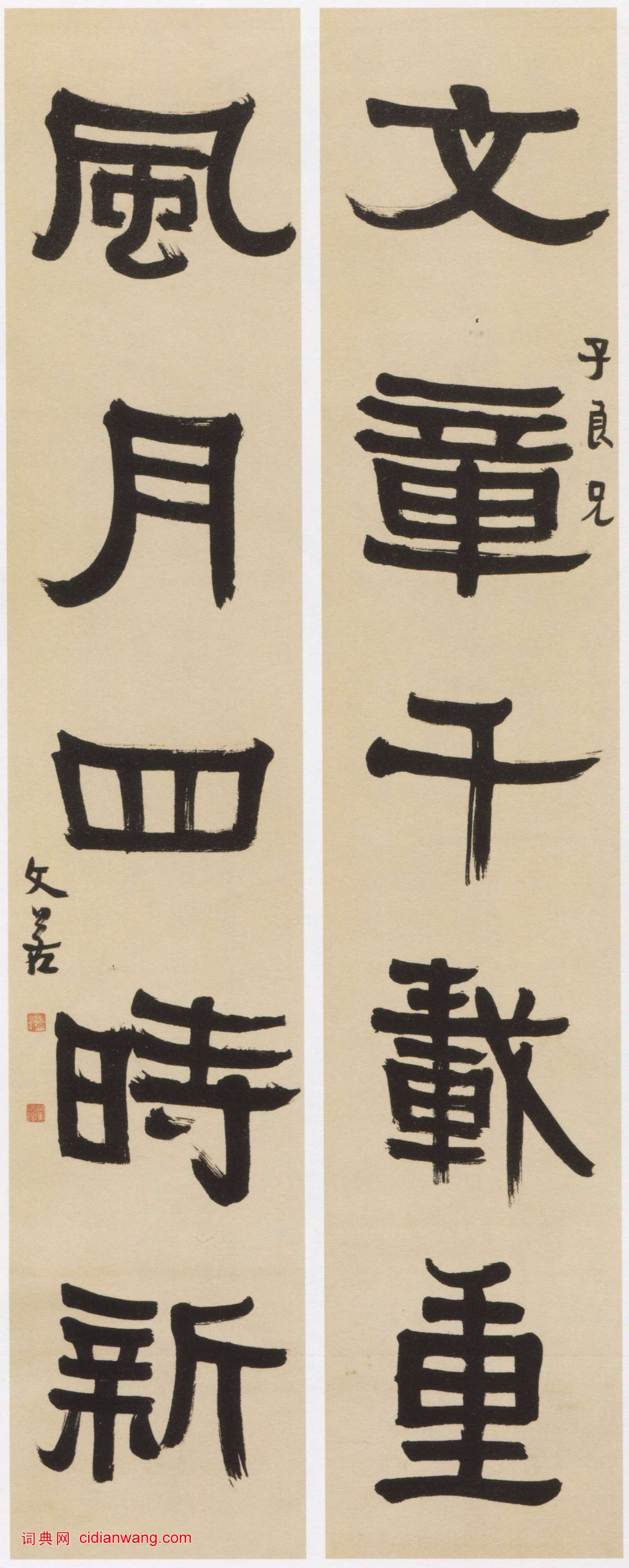 沙孟海《隸書文章風月五言聯》 133.3×25.5cm×2 天一閣博物館藏