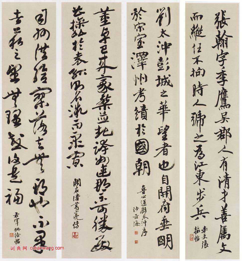 沙孟海《節臨古人法帖四條屏》 95.5×20cm×4 西泠印社藏