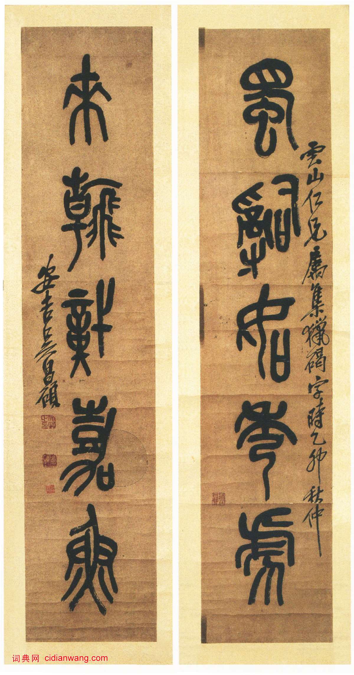 吳昌碩《篆書蜀辭來翰五言聯》 94.5×20cm×2 1915年 湖南省博物館藏