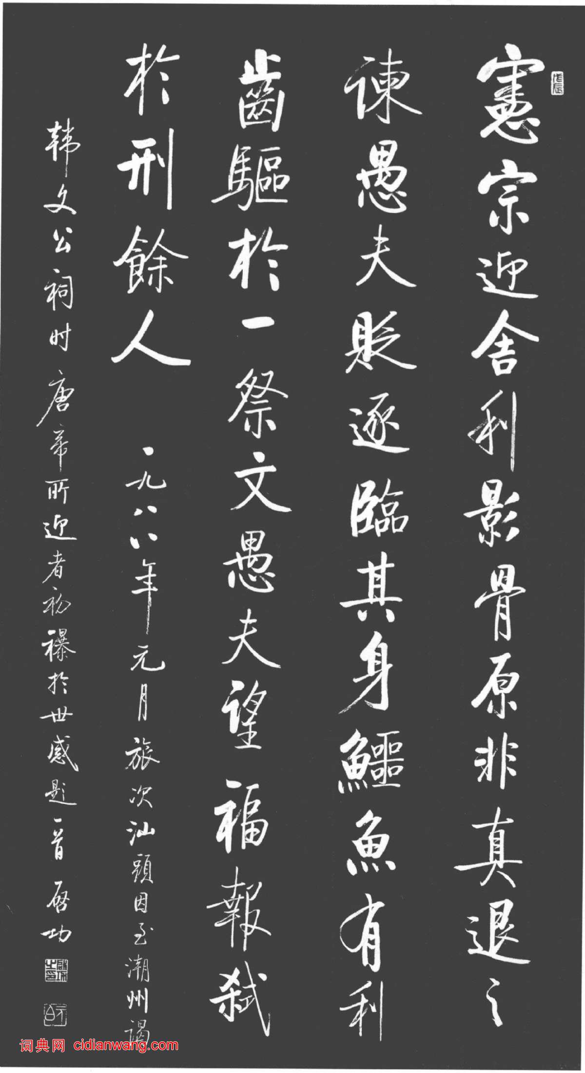 一九八八年元月,旅次汕頭,因至潮州謁韓文公祠時,唐帝所迎者初襮於世感題一首。啟功。