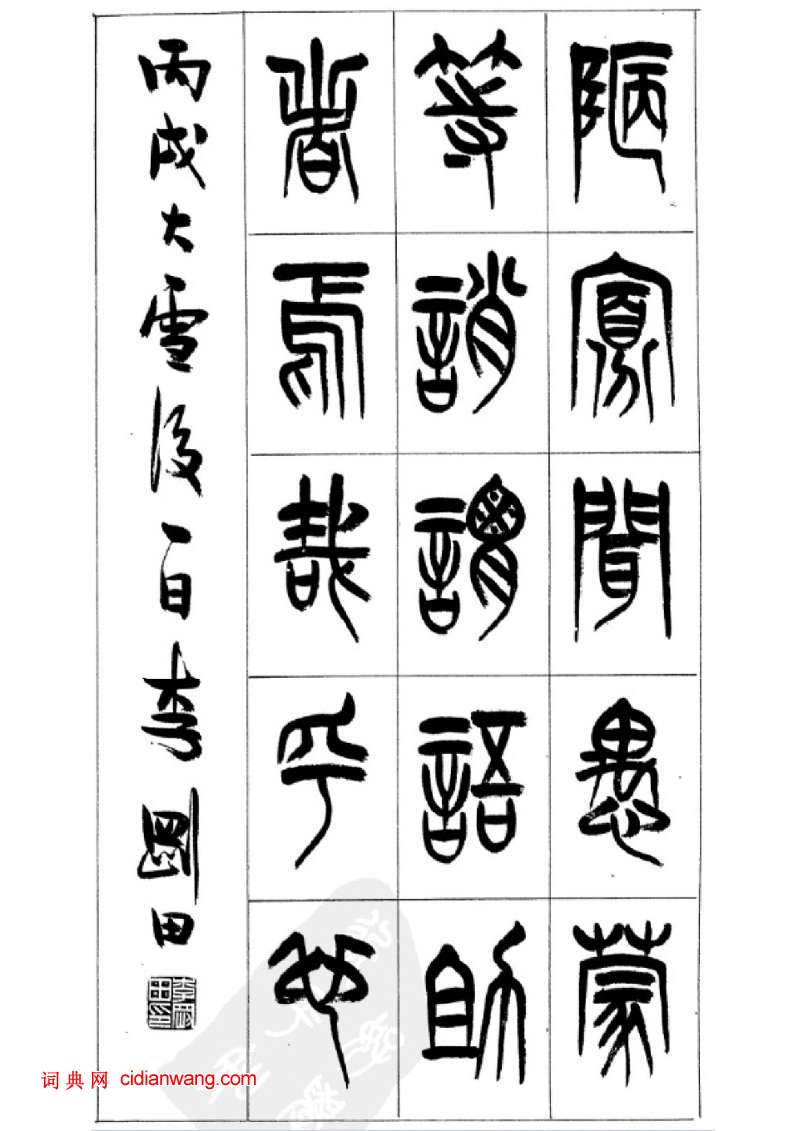 書法欣賞魏晉書法唐朝書法宋朝書法元朝書法明朝書法清朝書法近現代書法字典網>> 歷代書法>> 近現代>> 李剛田篆書《千字文》(17)正文 李剛田篆書《千字文》(17)作者:李剛田 書體:篆書 首 頁 上一頁 8 9 10 11 12 13 14 15 16 17 全文2019-1-21 15:04:01 相關文章:張瑞圖行楷《送康侯楊外孫北上七篇》 (行楷)張瑞圖《送康侯楊外孫北上七篇》冊 金箋 行楷書 冊頁 每開20.4×13cm...文震孟《行書初入侍班詩軸》 (行書)文震孟《行書初入侍班詩軸》,綾本, 尺寸:214×51.4cm, 上海博物館藏...張瑞圖《行書鬱郁雙松老詩》 (行書)張瑞圖《行書鬱郁雙松老詩》紙本行書 釋文:鬱郁雙松老,何年雨後移。插竿拈直乾,持...書法筆法通則與技法|筆法通則與技法">用筆一直是古今書人最為關注的事情。然而到具體措施,蓋莫能言。...鄧文原行草《致景良郎中尺牘》 (行草)鄧文原《致景良郎中尺牘》為行草書,紙本墨筆,縱33.4厘米,橫41.8厘米,現藏...陳洪綬《行書新霽索人酒詩冊》 (行書)陳洪綬《行書新霽索人酒詩冊》紙本 19.3×12.5cm×5 順治四年(16...東漢《李翕折里橋陠閣頌》摩崖刻石 (隸書)全稱《李翕折里橋陠閣頌》。東漢隸書摩崖刻石。 傳為仇紼書。 熹平元年刻。石在今陝...徐渭《草書白燕詩卷》徐渭徐渭|初字文清,改字文長,號天池山人、青藤居士,或署田水月,山陰(今浙江省紹...侯峒曾《行書七言律詩扇面》 (行書)侯峒曾《行書七言律詩扇面》紙本行書 50.5×15.6cm 遼寧省博物館藏此扇...黃侃《楷書幼輿司州六言聯》 (楷書)黃侃《楷書幼輿司州六言聯》 133×31.2cm×2 1923年作 湖北省博...