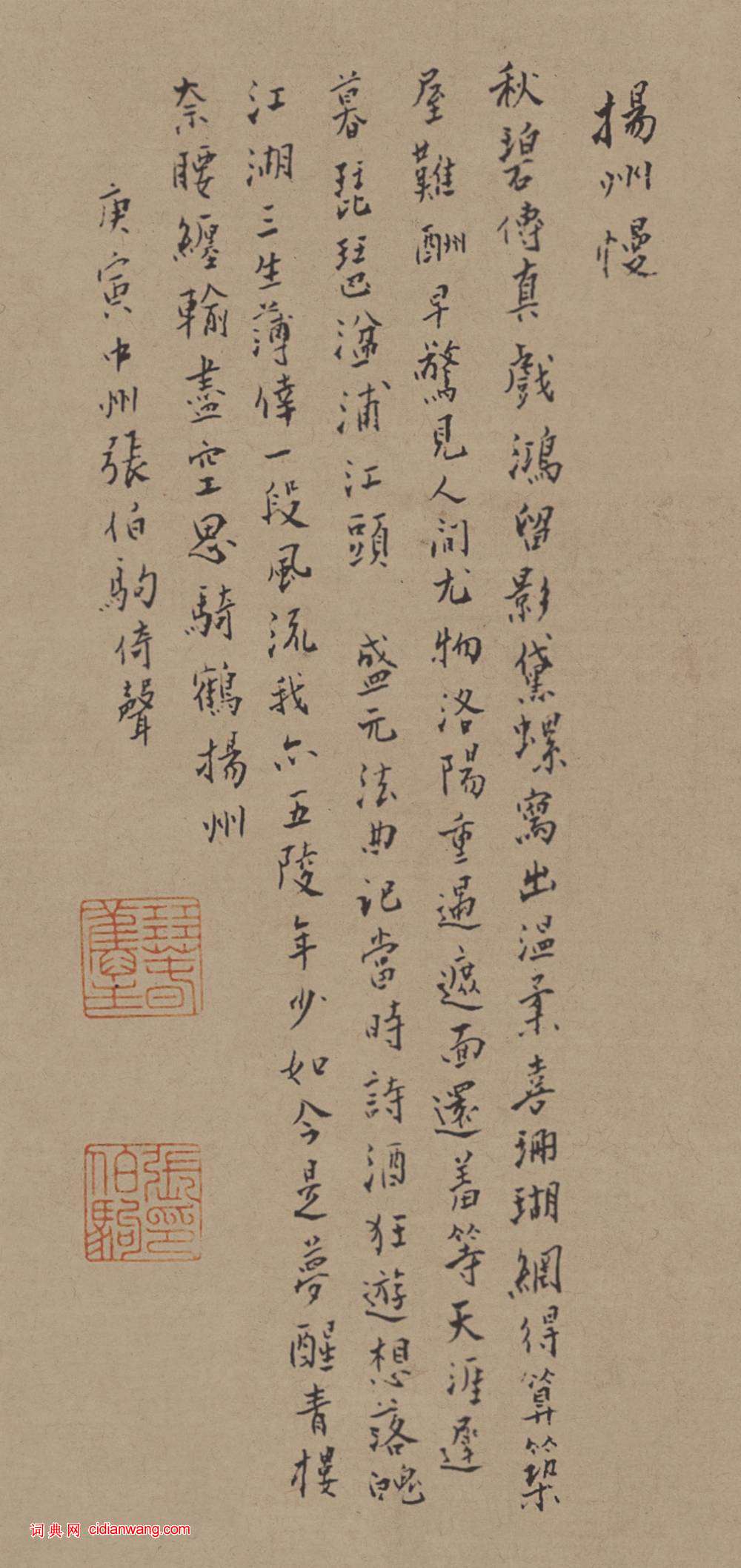 我亦五陵年少,如今是、夢醒青樓。奈腰纏輸盡,空思騎鶴揚州。