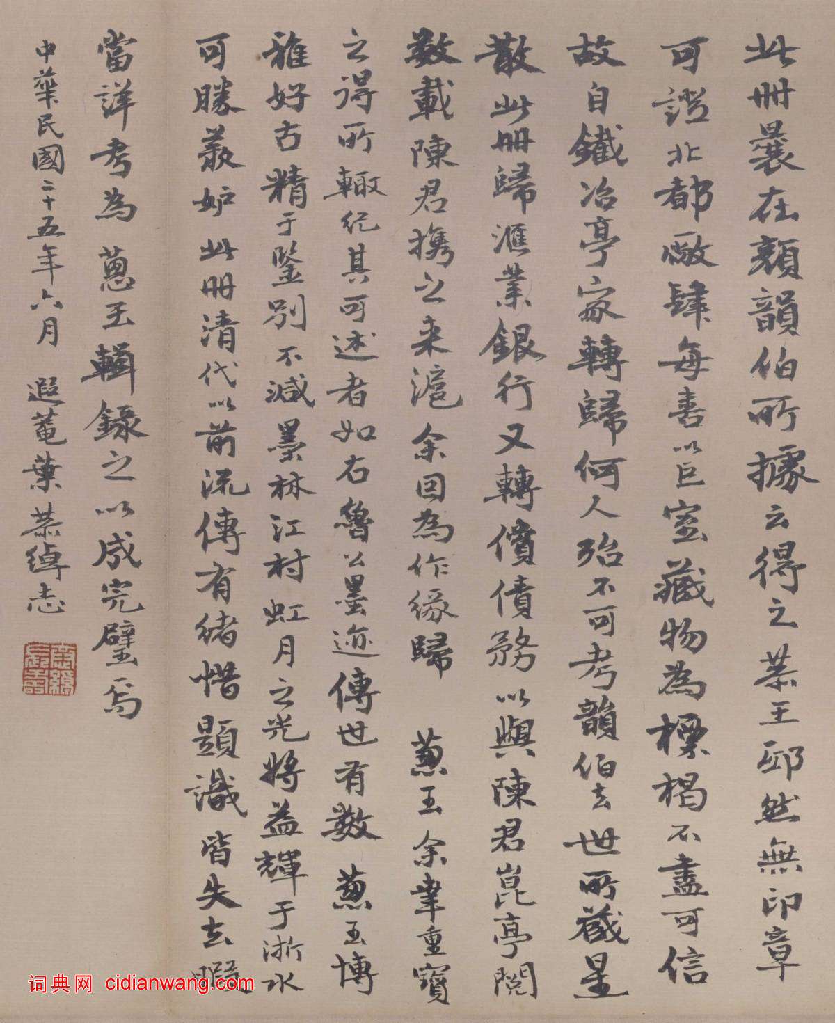 葉恭綽跋《顏真卿竹山堂連句》,行書,墨跡,書於民國二十五年(1936年),北京故宮博物院收藏。
