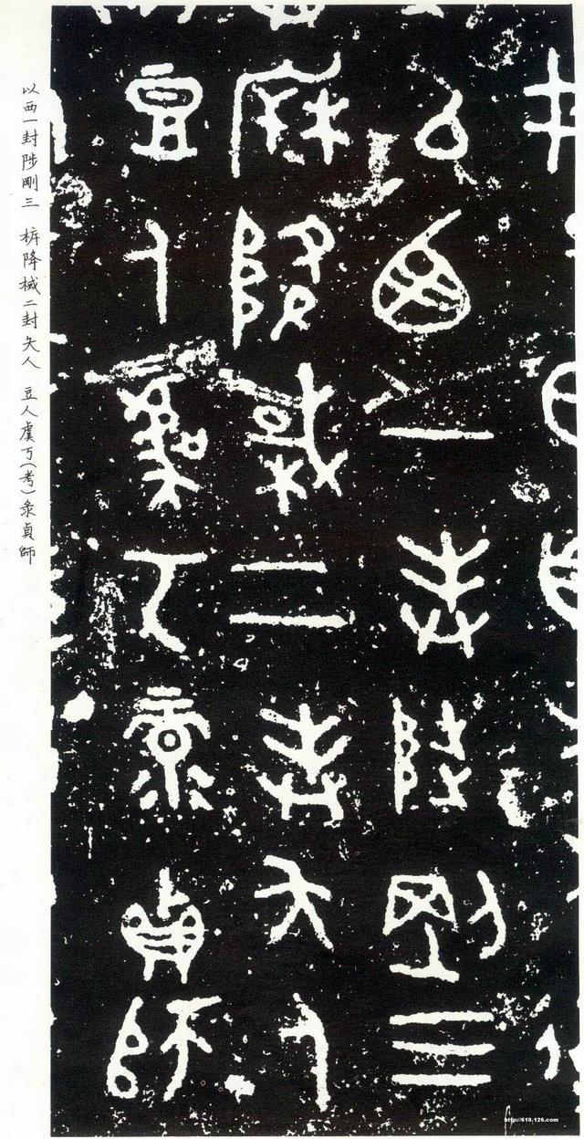 作為西周中晚期誕生的《散氏盤》 ,如何篆“引”?除了遵循大篆篆“引”的共性規律外,還要挖掘《散盤》的獨特個性,一是要注意節奏速度。《散氏盤》以輕鬆自然、生動奇古取勝。所以控制筆鋒時,除了要表現出大篆均勻凝重的線條這一物質基礎外,還要散落懷抱、放鬆心境,以表現出它的爛漫情懷。二要注意“八面出鋒”。這種用筆評判多指後世的變化粗細相間,加上筆畫的搖曳抖動,使簡單的一根線頓時變的姿態多情,趣味十足。