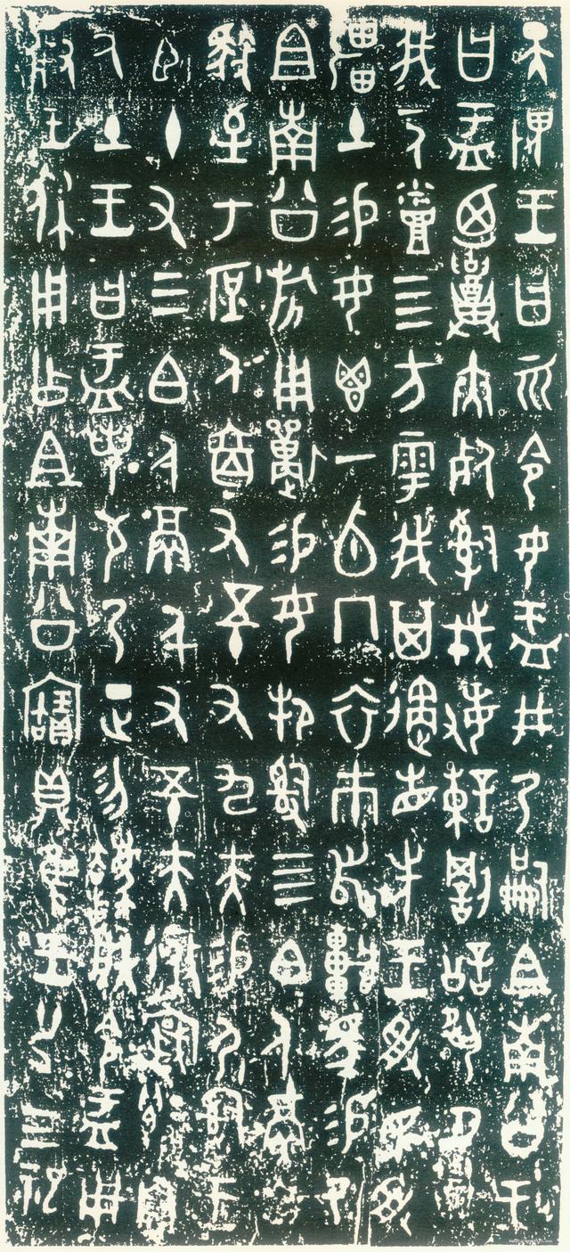 《大盂鼎》在“四大同寶”中,其線條是堅實肥厚的典範。作為西周前期金文的代表,《大盂鼎》雖已初具圓渾樸茂的金文線質,但同時在書寫上又多有殷商甲骨鍥刻遺風,線條起止常出鋒芒,爽利勁挺的筆畫隨處可見,具有強烈的筆書意識,較少人工修飾痕跡,一任手書的原生狀態,當然這也是西周早期金文的共同特點。