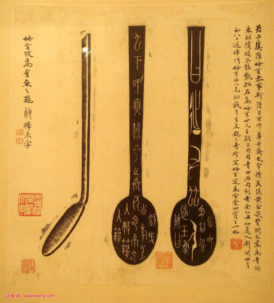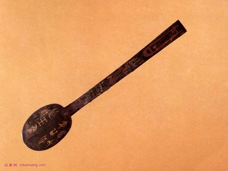 銘文“曰:之司?匕,述(墜)王魚鼎。曰:欽哉,出遊水蟲,下民無智(知),參蚩傳二十年代山西渾源出土,曾為一代名家羅振玉收藏。匕前端圓,柄首殘斷。通體有錯金銘文,正反兩面共殘存三十六字。