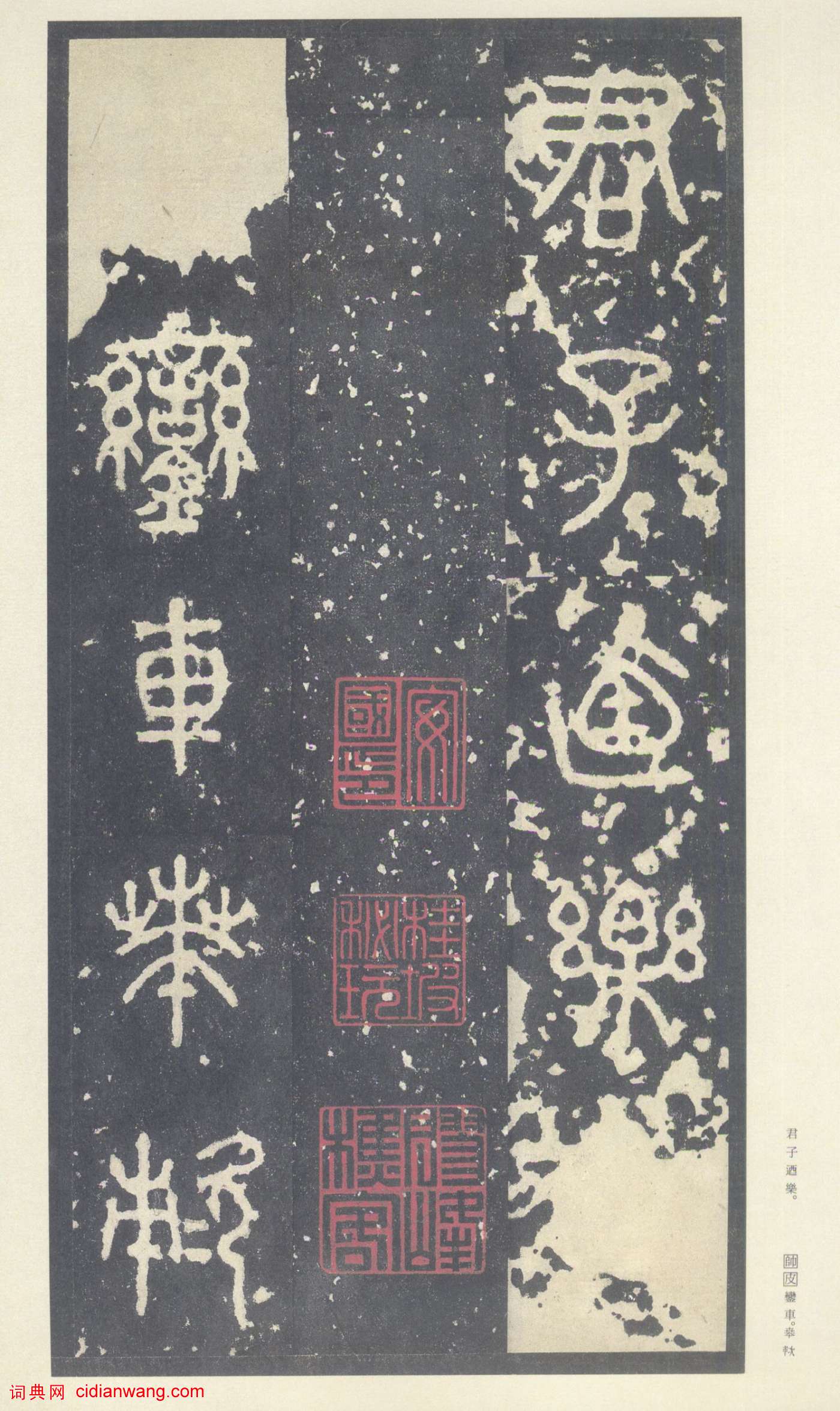 下面是二玄社原色法帖選 49:《周宣王石鼓文》〈十鼓齋中權本〉,日本二玄社出版,51圖