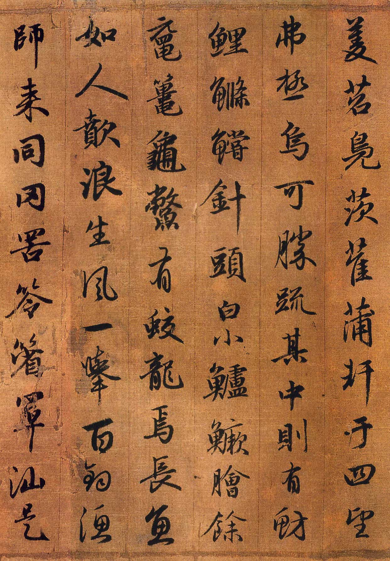 資源下載魏晉書法唐朝書法宋朝書法元朝書法明朝書法清朝書法近現代書法字典網>> 歷代書法>> 遼金元>> 趙孟頫《吳興賦》(2)正文 趙孟頫《吳興賦》(2)作者:趙孟頫 書體:行書 首 頁 上一頁 1 2 3 4 5 下一頁 尾 頁趙孟頫的相關書法作品:趙孟頫《蘭亭序十三跋》殘本 趙孟頫行書《文賦》 趙孟頫小楷《跋陳琳浮鳧圖》 趙孟頫行書《洛神賦》 趙孟頫行書《書蘇軾西湖詩》 趙孟頫行書《違遠帖》 趙孟頫行書《宗陽宮帖》 趙孟頫·後赤壁賦 趙孟頫·行書杜甫秋興八首 相關文章:歐陽詢隸書《大唐宗聖觀記》 (隸書)歐陽詢《大唐宗聖觀記》拓本,隸書 204×87厘米 武德九年(626)立 北京...東漢隸書《裴岑紀功碑》 (隸書)《裴岑紀功碑》東漢碑刻,全稱《漢敦煌太守裴岑紀功碑》,順帝永和二年(137)立於...張雨行書《論書帖》 (行書)張雨《論書帖》無紀年 蘇州博物館藏 【釋文】:宋季書學幾墜.蓀壁老人始用率更書為...朱熹行書《城南唱和詩卷》 (行書)朱熹《城南唱和詩卷》 紙本,手卷 31.5×275.5厘米。北京故宮博物院藏朱...黃庭堅行書《奉呈外舅孫莘老》 (行書)黃庭堅 奉呈外舅孫莘老,台北故宮博物院藏九陌黃塵烏帽底。五湖春水白鷗前。扁舟不為...張瑞圖《行草書杜甫詩冊》 (行草)張瑞圖《行草書杜甫詩冊》天啟四年(1624) 朵雲軒藏 【釋文】知歸俗可忽,取適...趙孟頫行書《光福寺重建塔記》 (行書)《光福寺重建塔記》,紙本,本幅縱28.6cm,橫284cm,全卷29cm×37...顏真卿行書《祭伯父文稿》 (行書)顏真卿《祭伯父文稿》宋甲秀堂拓本 北京故宮博物院藏又稱《告伯父文稿》,全稱《祭伯...郭天錫小楷《王獻之保母帖跋》 (小楷)郭天錫字佑之,號北山,曾為御史,今山西大同(雲中)人或作天水人,僑寓杭州,做居於...張照行書《臨宋人八書卷》 (行書)張照《臨宋人八書卷》絹本行書 22×302cm 吉林省博物院藏 釋文:略【資料...