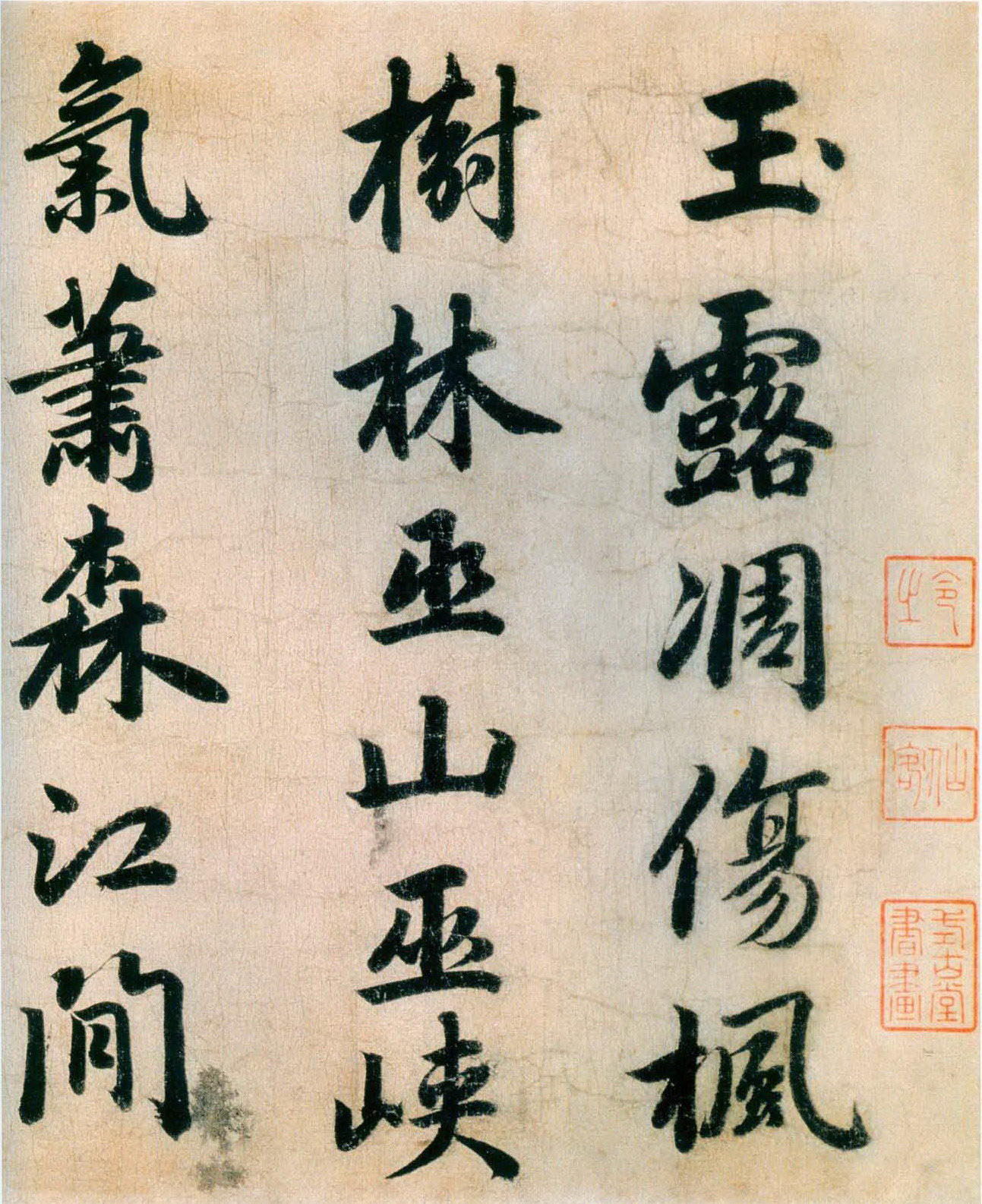 趙孟頫行書《杜甫秋興八首》縱23.5厘米,橫261.5厘米。上海博物館藏(沈同樾捐贈)。此卷書杜甫秋興八首。款署:“此詩是吾四十年前所書,今人觀之未 必以為吾書也。子昂重題。至治二年 (1322) 正月十七日。”據此知該卷 書於元初至元十九年 (1282) 前後,作者時年二十八歲左右。此書用筆細膩,結體端莊秀逸,筆圓墨潤,筋豐骨健,給人以神定氣閒,虛和宛朗的美感。