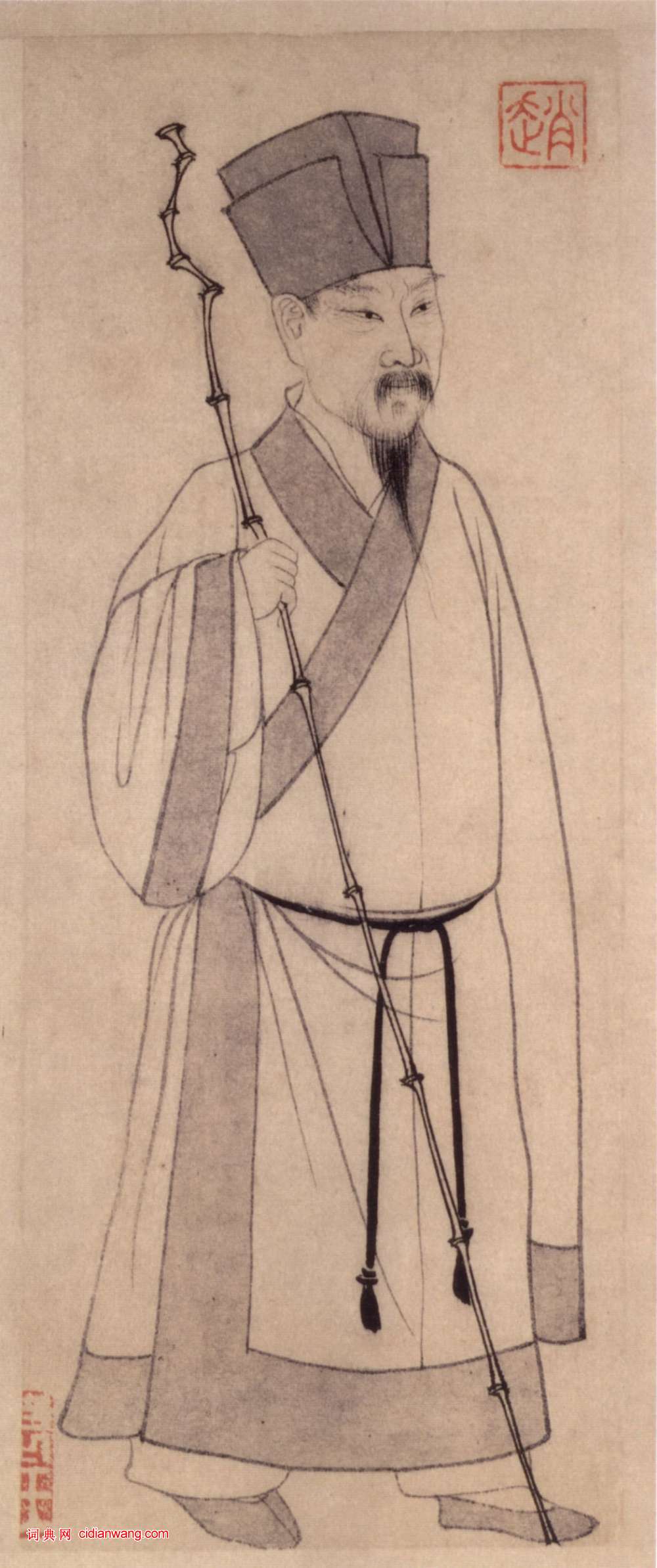 趙孟頫書蘇軾《前後赤壁賦》,並作東坡像於卷首。台北故宮博物院藏。《前後赤壁賦》紙本冊裝,共11開21頁,每頁縱27.2厘米,橫11.1厘米。帖共81行,935字。末署“大德辛丑正月八日,明遠弟以此紙求書二賦,為書於松雪齋,並作東坡像於卷首。子昂。”辛丑為大德五年(公元1301年)時趙孟頫48歲。這裡僅選《前赤壁賦》部分。該帖分行布白疏朗從容,用筆圓潤遒勁,宛轉流美,風骨內含,神彩飄逸,盡得魏晉風流遺韻。