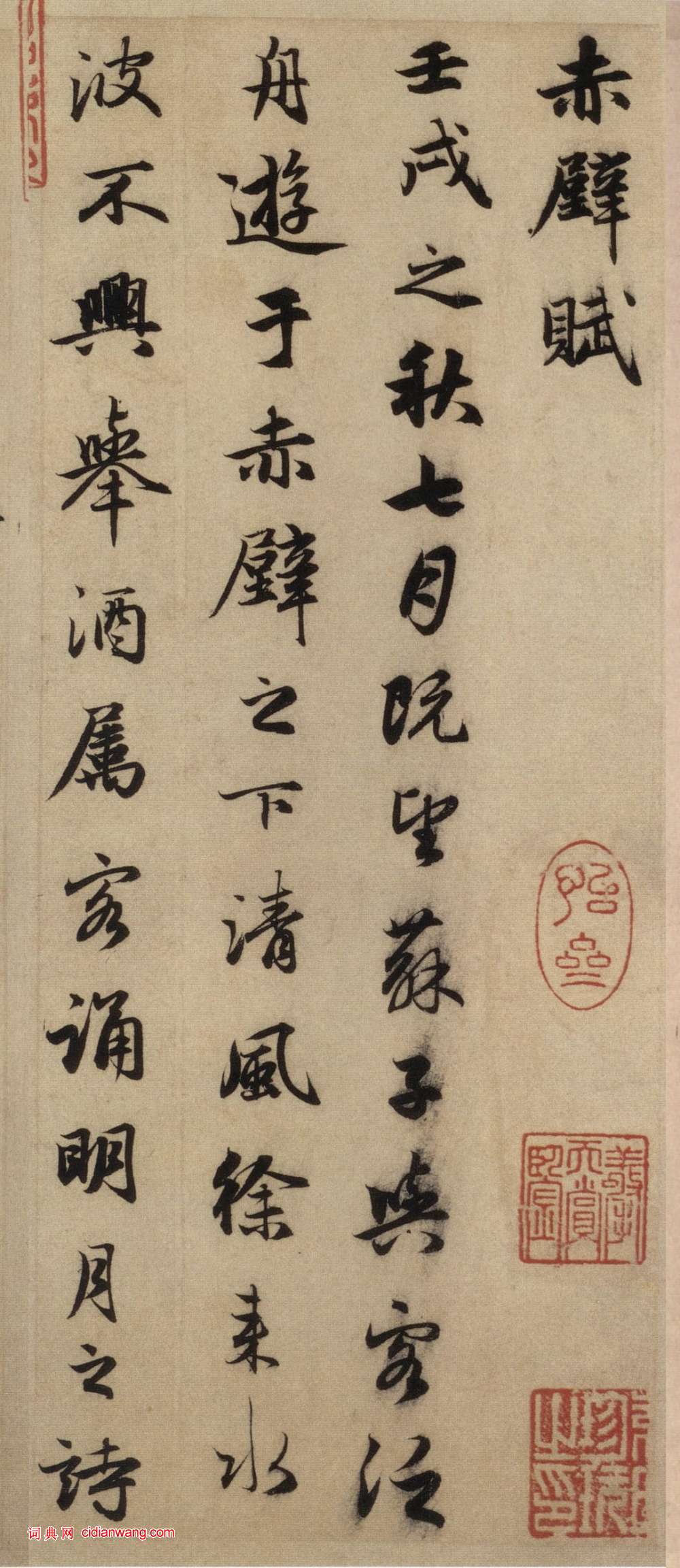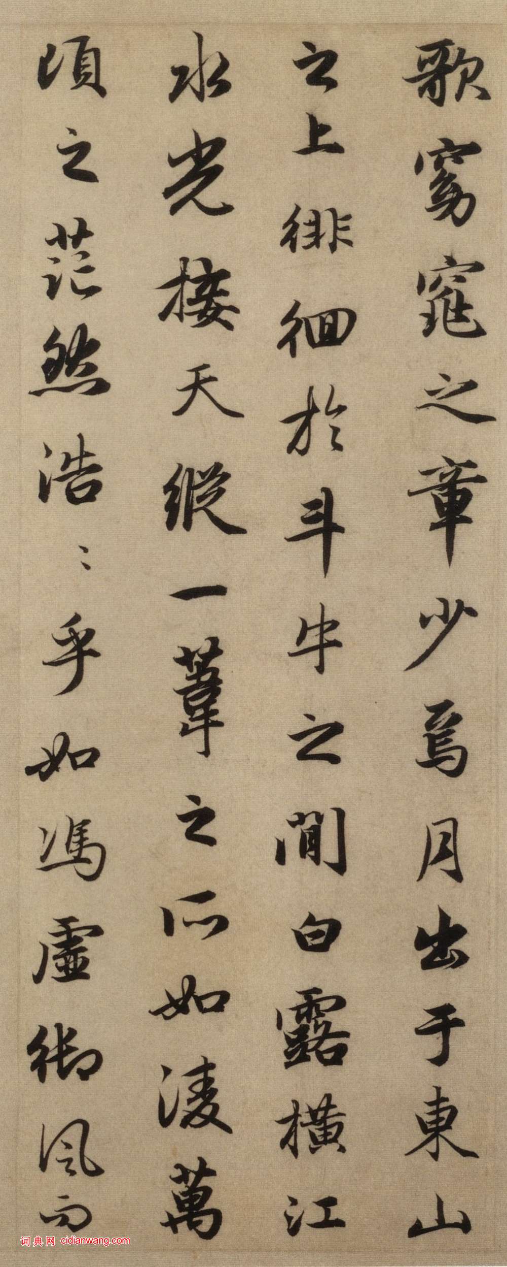 書法欣賞魏晉書法唐朝書法宋朝書法元朝書法明朝書法清朝書法近現代書法字典網>> 歷代書法>> 遼金元>> 趙孟頫·前赤壁賦(2)正文 趙孟頫·前赤壁賦(2)作者:趙孟頫 書體:行書 首 頁 上一頁 1 2 3 4 5 6 7 下一頁 尾 頁 全文2015-12-25 12:30:41 趙孟頫的相關書法作品:趙孟頫《行書十札卷》 趙孟頫行書《遠遊篇》 趙孟頫·後赤壁賦 趙孟頫·題《二羊圖》 趙孟頫的手札欣賞 趙孟頫行書《為日林和上書心經》 趙孟頫行書集字《靜夜思》 趙孟頫行書《酒德頌》 趙孟頫行書《臨蘭亭序卷》 相關文章:費丹旭《行書東坡題跋軸》 (行書)費丹旭《行書東坡題跋軸》紙本行書 130×29.8cm 上海博物館 藏釋文:魯...梅蘭芳書法作品欣賞 (行楷)梅蘭芳先生書法清靜雋秀,以行楷書 為主,小楷尤精。小楷風格來源於《樂毅論》、《黃...文徵明小楷《致吳愈尺牘十通》 (小楷)文徵明《致吳愈尺牘十通》,紙本墨跡,小楷,又稱《致吳參政十札冊》。此十通尺牘均系...仇遠行楷《和義山元旦詩》 (行楷)仇遠 壬辰(1292年)作 行楷書《和義山元旦詩》釋文:壬辰元旦奉和義山先生韻。...張雨行書《自書雜詩冊》 (行書)至正五年(1345) 張雨《自書雜詩冊》粉花箋 23.7×15.3cm×24...張正民跋《蔡襄自書詩卷》 (行書)宋 張正民跋《蔡襄自書詩卷》,紙本,行書,北京故宮博物院藏。釋文:君謨妙畫如此,...文徵明小楷《跋唐摹萬歲通天帖》 (小楷)文徵明《跋唐摹萬歲通天帖》 遼寧省博物館藏釋文:右唐人雙鉤晉王右軍而下十帖,岳倦...王穉登行書《錄宋人語》 (行書)王穉登《錄宋人語》紙本 行書 縱117.3cm,橫44.5cm,北京故宮博物院藏...沈曾植《行書竹爐雨笠七言聯》 (行書)沈曾植《行書竹爐雨笠七言聯》紙本行書 163×34.5cm×2 蘇偉網藏釋...倪元璐行草《致老親翁札》 (行草)倪元璐《致老親翁札》行草書 27.3×32cm 香港中文大學文物館藏(北山堂...