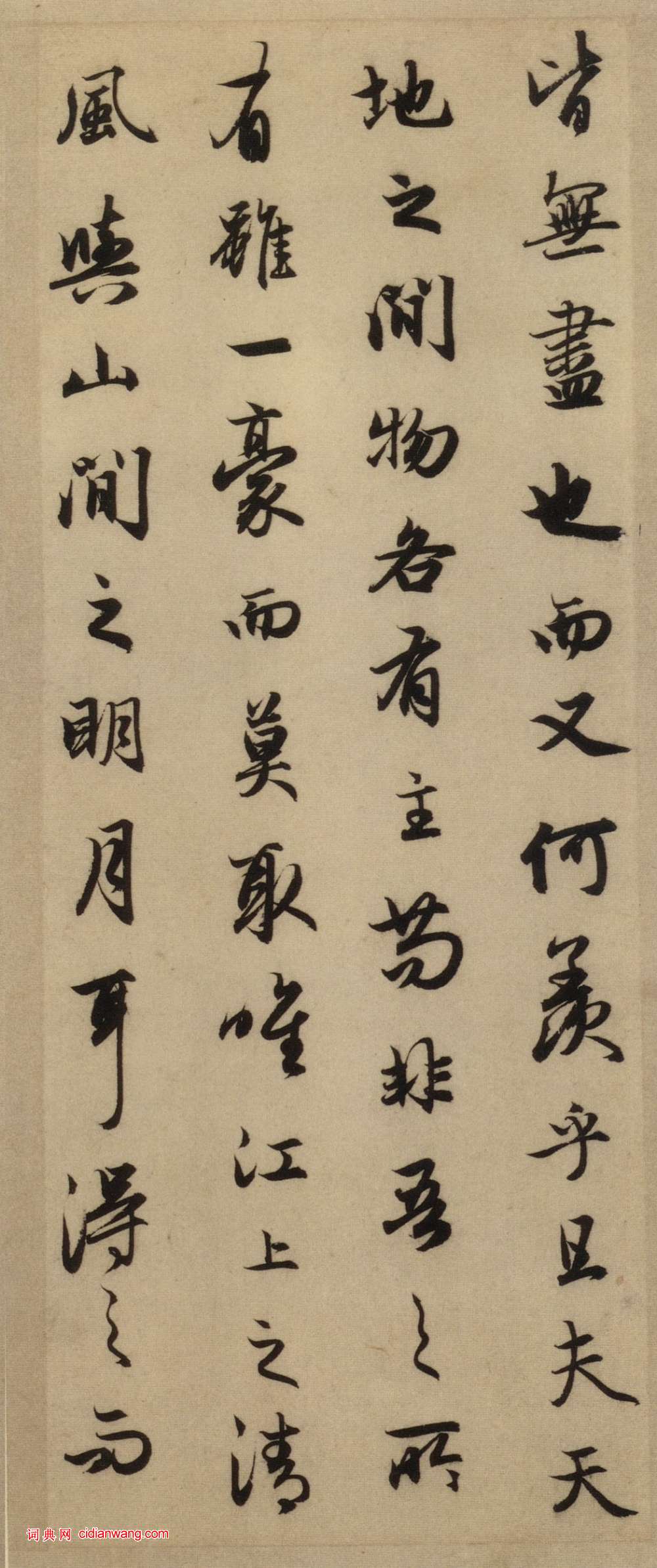 書法欣賞魏晉書法唐朝書法宋朝書法元朝書法明朝書法清朝書法近現代書法字典網>> 歷代書法>> 遼金元>> 趙孟頫·前赤壁賦(6)正文 趙孟頫·前赤壁賦(6)作者:趙孟頫 書體:行書 首 頁 上一頁 1 2 3 4 5 6 7 下一頁 尾 頁 全文2015-12-25 12:30:41 趙孟頫的相關書法作品:趙孟頫行書《陋室銘》 趙孟頫行楷《撫州永安院僧堂記》 趙孟頫行書《跋鮮于樞御史箴卷》 趙孟頫篆書欣賞 趙孟頫行書《半畝田帖》 趙孟頫·跋趙佶《竹禽圖》 趙孟頫行書《歸去來辭卷》 趙孟頫小楷《黃庭經》 趙孟頫《江南淨土詞十二首》 相關文章:劉墉行草《臨前賢法帖扇面》 (行草)劉墉《臨前賢法帖扇面》烏紙行草書 16×51.2cm 台北故宮博物院藏釋文:(...戚繼光《送李小山歸蓬萊詩》 (行書)戚繼光行書《送李小山歸蓬萊詩》 紙本。130.6×90厘米。山西省博物館藏。這...彭年《行書詩翰冊》 (行書)彭年《行書詩翰冊》紙本,冊頁,共7開,每開縱26cm,橫33.5cm。行書,68...陳鵬年《行書八言聯》 (行書)陳鵬年《行書八言聯》台北何創時書法藝術基金會藏釋文:玉樹紫芝丹鳳結彩,琪花綠竹黃...趙孟頫行書《山上帖》 (行書)趙孟頫書札欣賞《山上帖》(自山上來帖)紙本,縱30.5cm,橫62.7cm。北京...張孝祥行書《柴溝帖》 (行書)張孝祥《柴溝帖》 紙本 行書 縱33.5厘米 橫38.9厘米 上海博物館藏 ...黃道周草書《贈屈靜根七言律詩軸》 (草書)黃道周《贈屈靜根七言律詩軸》絹本草書 236.0×53.0cm 崇禎十五年(1...蘇軾行書《歸去來兮辭》卷 (行書)蘇軾《歸去來兮辭》卷 32 x 181.1 cm 台北故宮博物院藏 東坡書法兼得...成親王小楷《洛神賦》 (小楷)成親王,清朝皇族爵位,愛新覺羅·永瑆(1752-1823)是乾隆帝的第十一個兒...倪瓚小楷《題周文英詩志傳》 (小楷)倪瓚小楷《題周文英詩志傳》 1372年 縱25.9厘米 橫26.2厘米 遼寧省博...