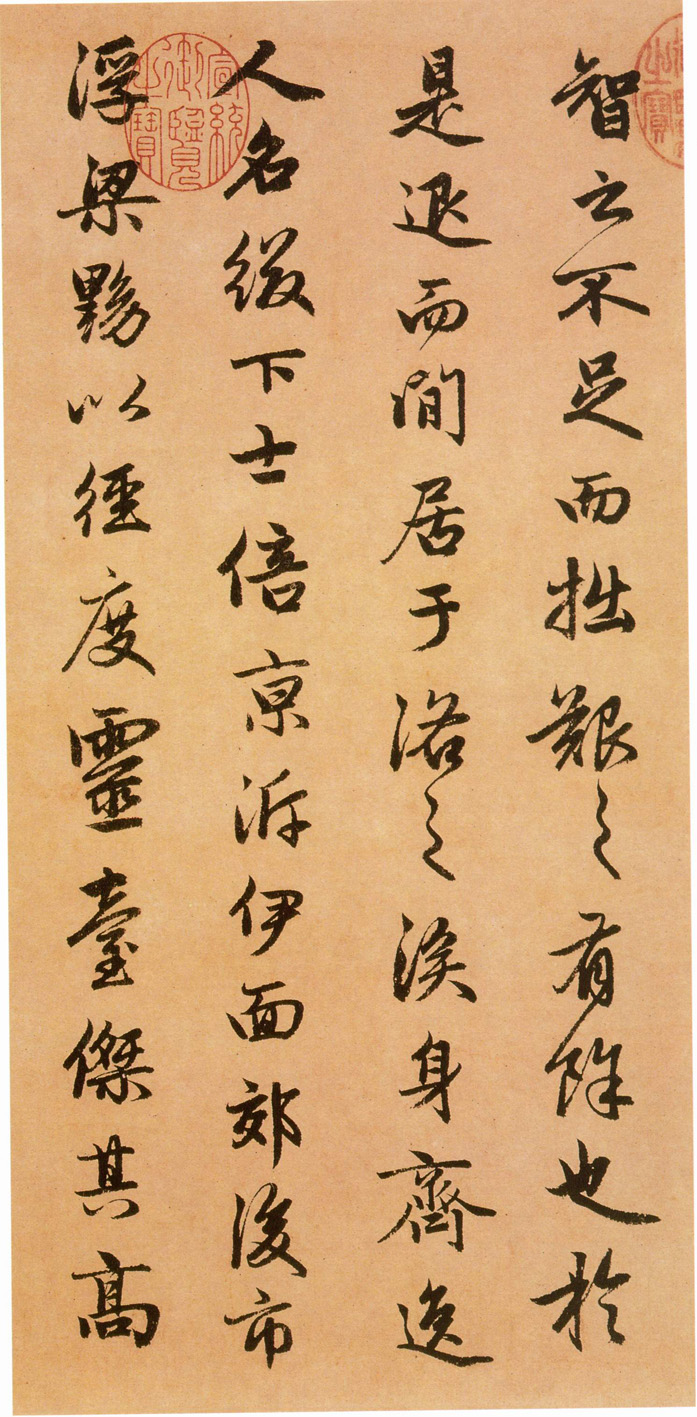 與潘岳的情況相似,趙孟頫也是引起後世較大爭議的歷史人物之一。他本人一直徘徊在仕與隱的兩極中間,加之又是以舊王孫的身份出仕,故其心理之策負可想而知。他平生常為進退之身不由已而苦惱,趙孟頫的此種內疚愧作之情,實在是一種難以排遣並且相伴終身的客觀存在。他書寫《閒居賦》,實際上就是希望能夠藉助書法的力量,一定程式上調和或緩解內心的矛盾和不安,使得自己的心宇獲得片時的寧靜。此作筆意安閒,氣韻清新,通篇行楷結合,方圓兼備,體態優雅,也體現出趙氏書法藝術書卷氣和富貴氣。